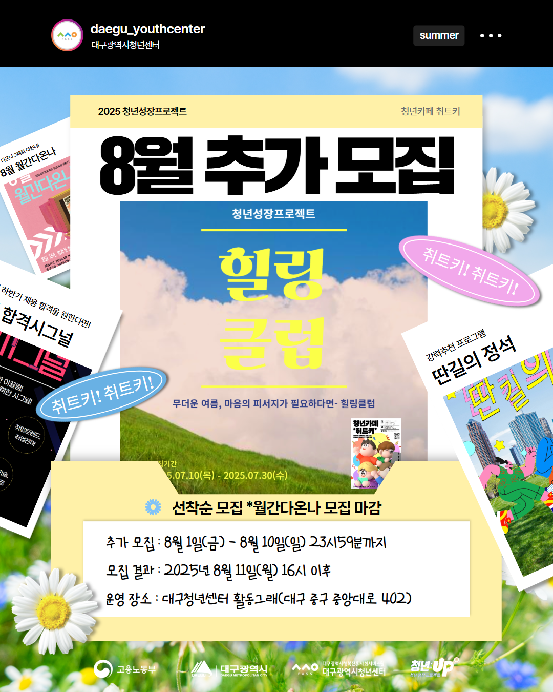 2025 청년성장프로젝트 청년카페 '취트키' 8월 프로그램 참여자 추가 모집작성자 : 대구청년센터 작성일 : 25-08-01 대구광역시청년센터