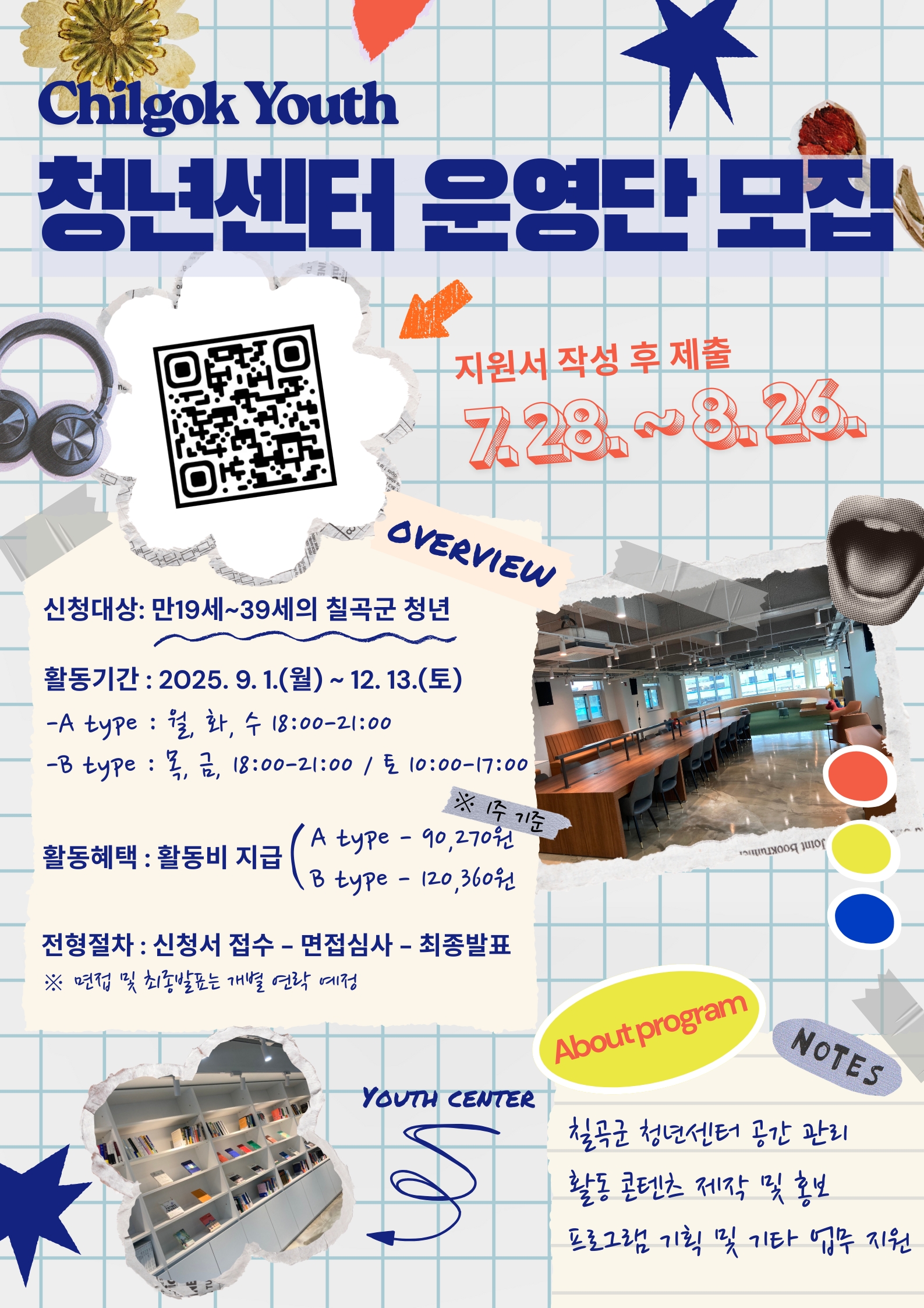 [모집] 🌟칠곡군 청년센터 운영단 2기 모집🌟작성자 : 장재영 작성일 : 25-08-08