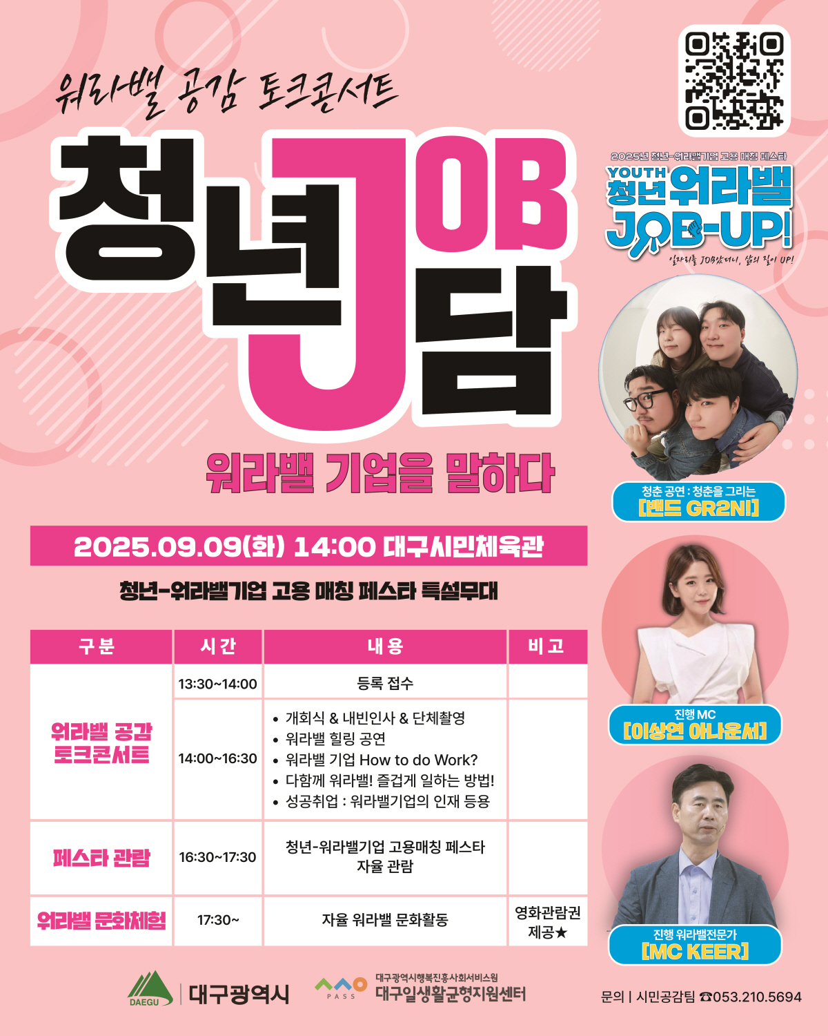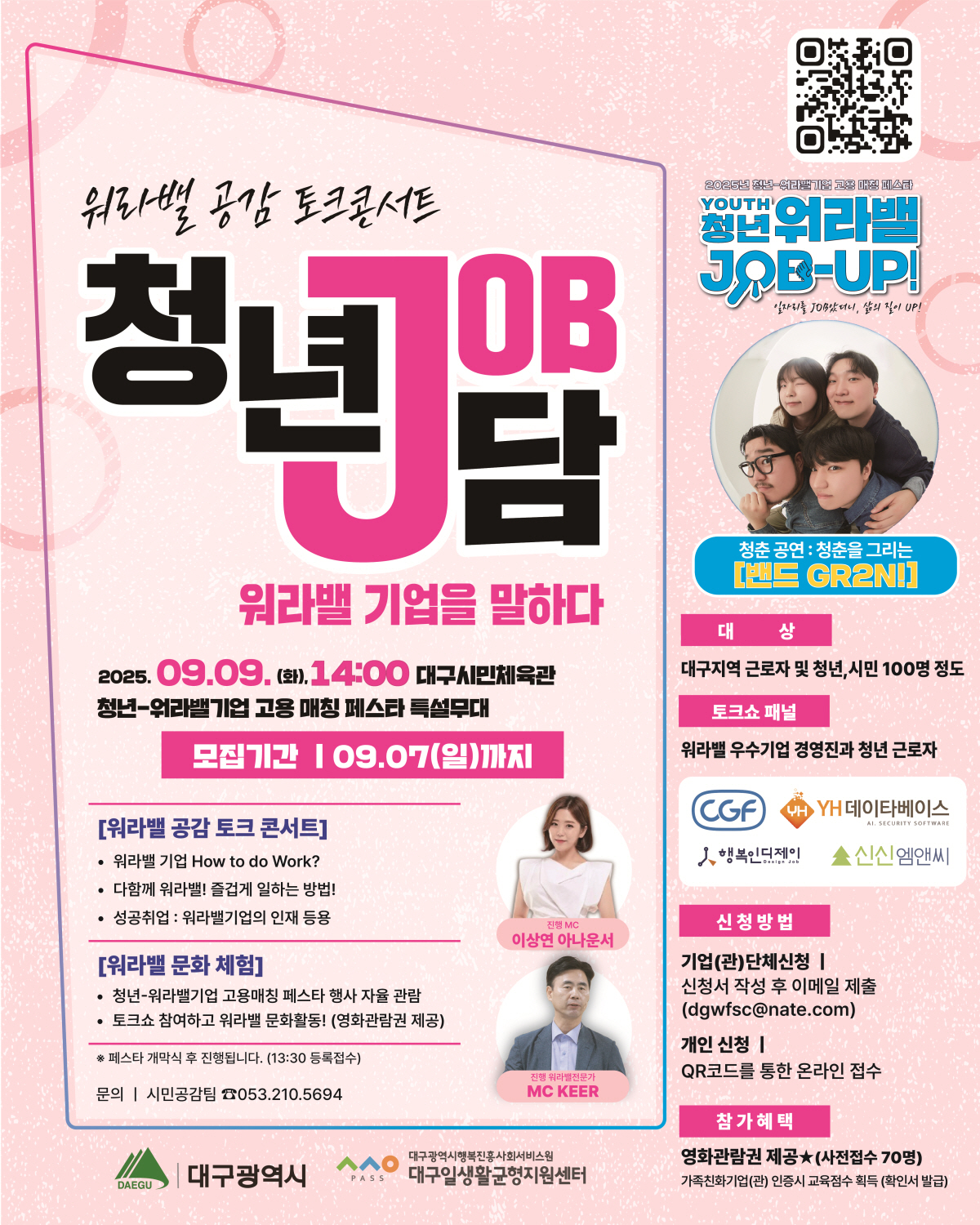 [워라밸 공감 토크쇼 : 청년잡(JOB)업] 참가자 모집 *2025년 청년-워라밸기업 고용 매칭 페스타 부대행사작성자 : 대구일가정양립지원센터 작성일 : 25-08-19
