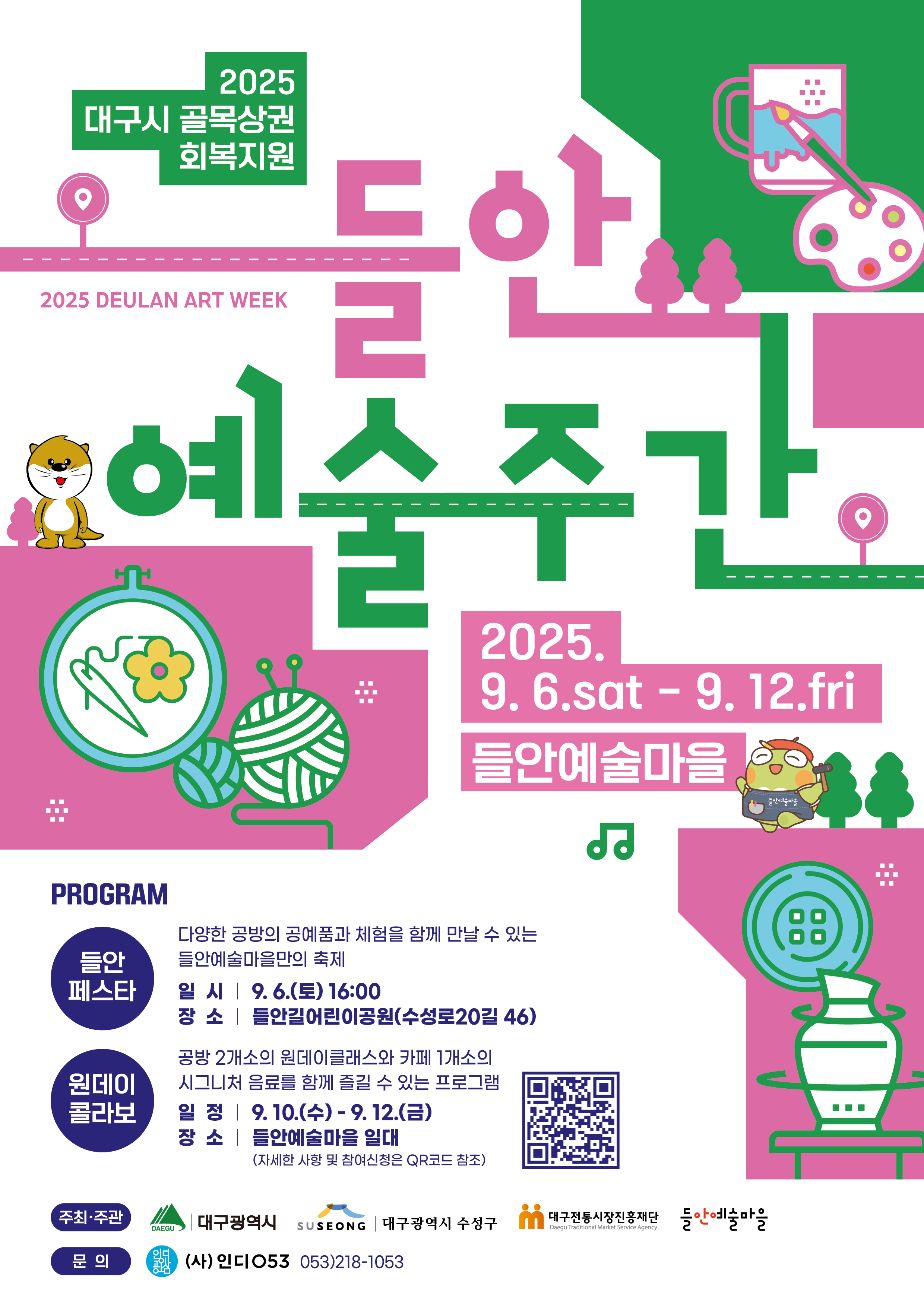 🎨2025 대구시 골목상권 회복지원 들안예술주간 <원데이콜라보> 프로그램의 참여자를 모집합니다.🖌️