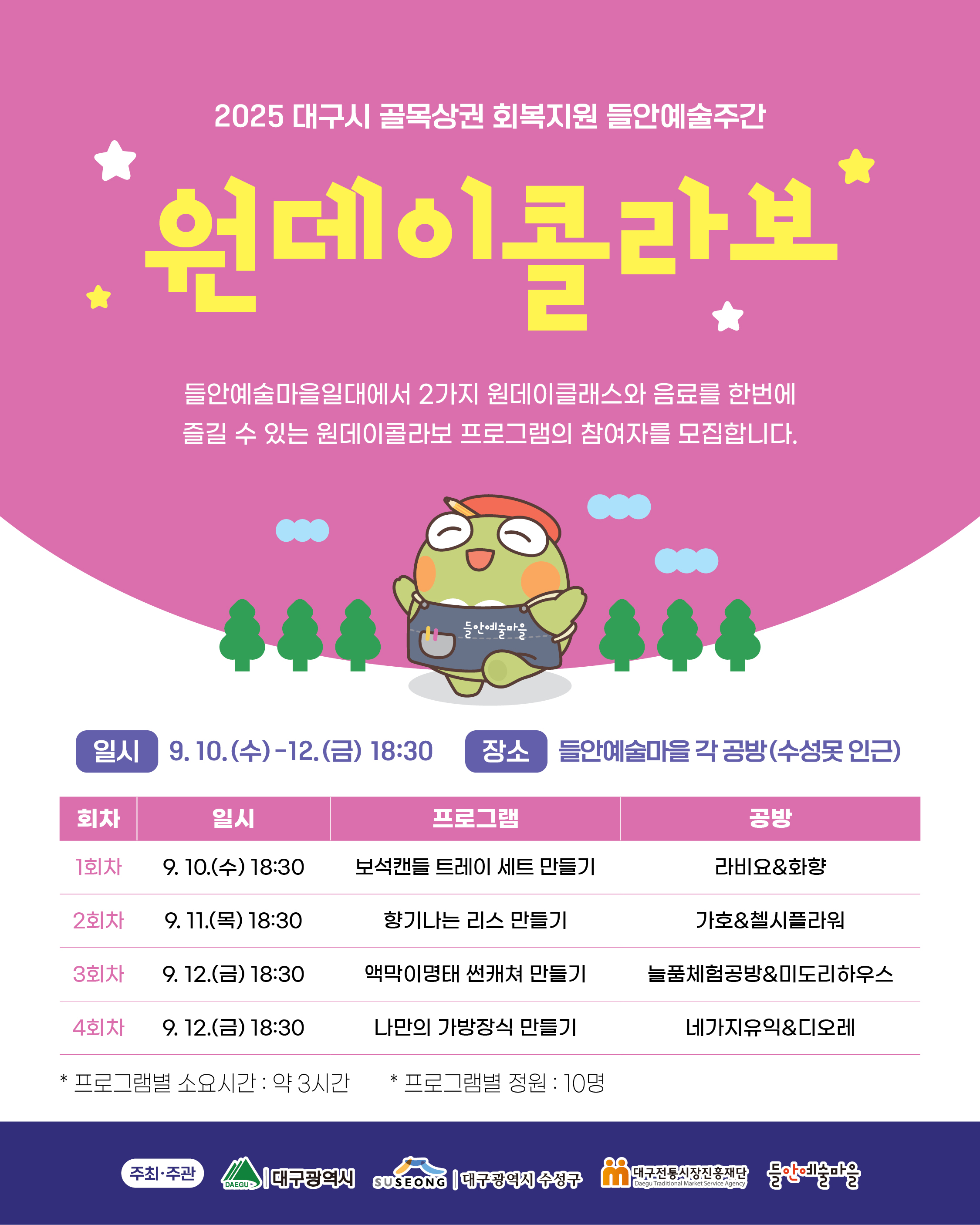 [2025 대구시 골목상권 회복지원 들안예술주간 <원데이콜라보> 프로그램의 참여자를 모집합니다.]작성자 : 이효재 작성일 : 25-08-22