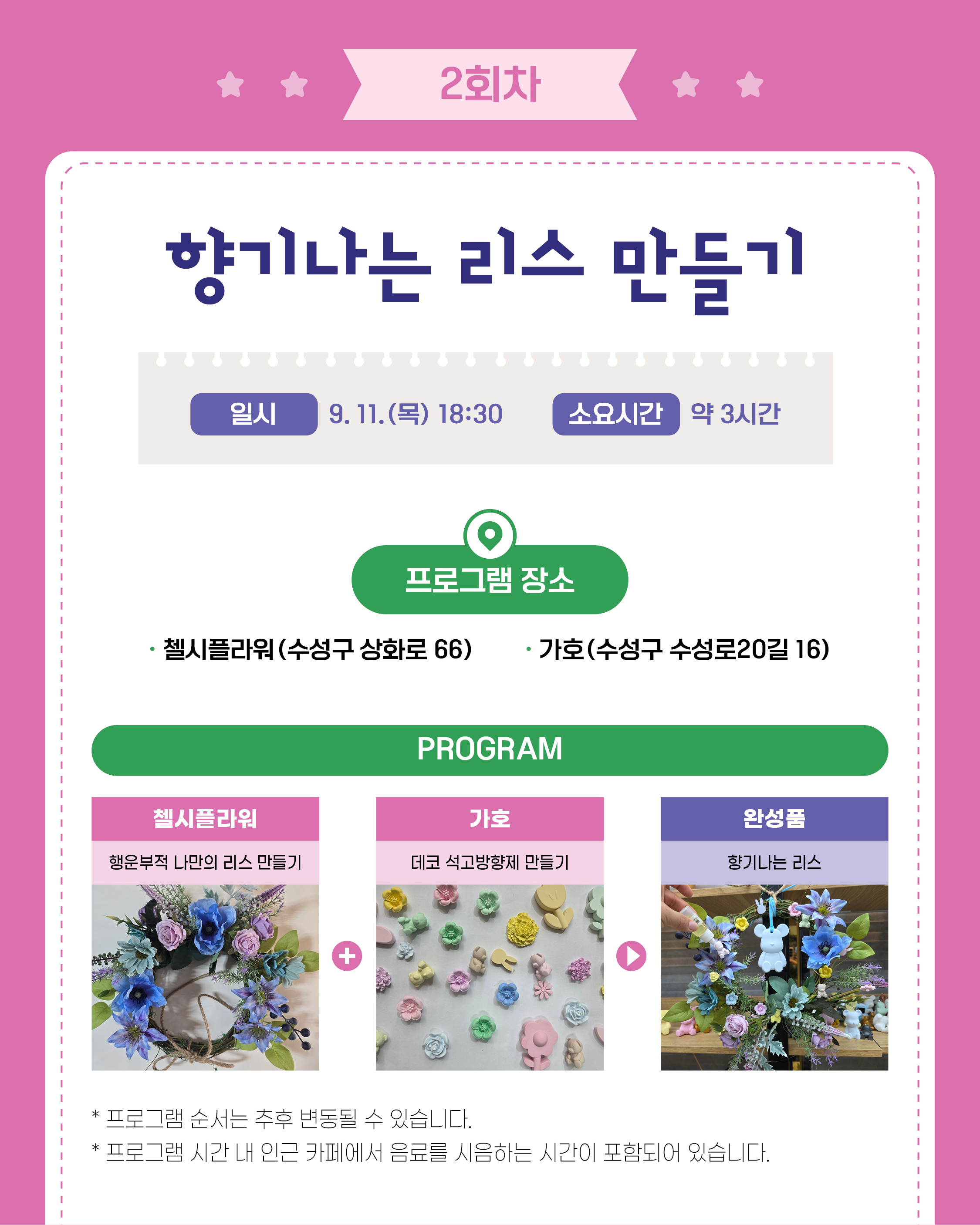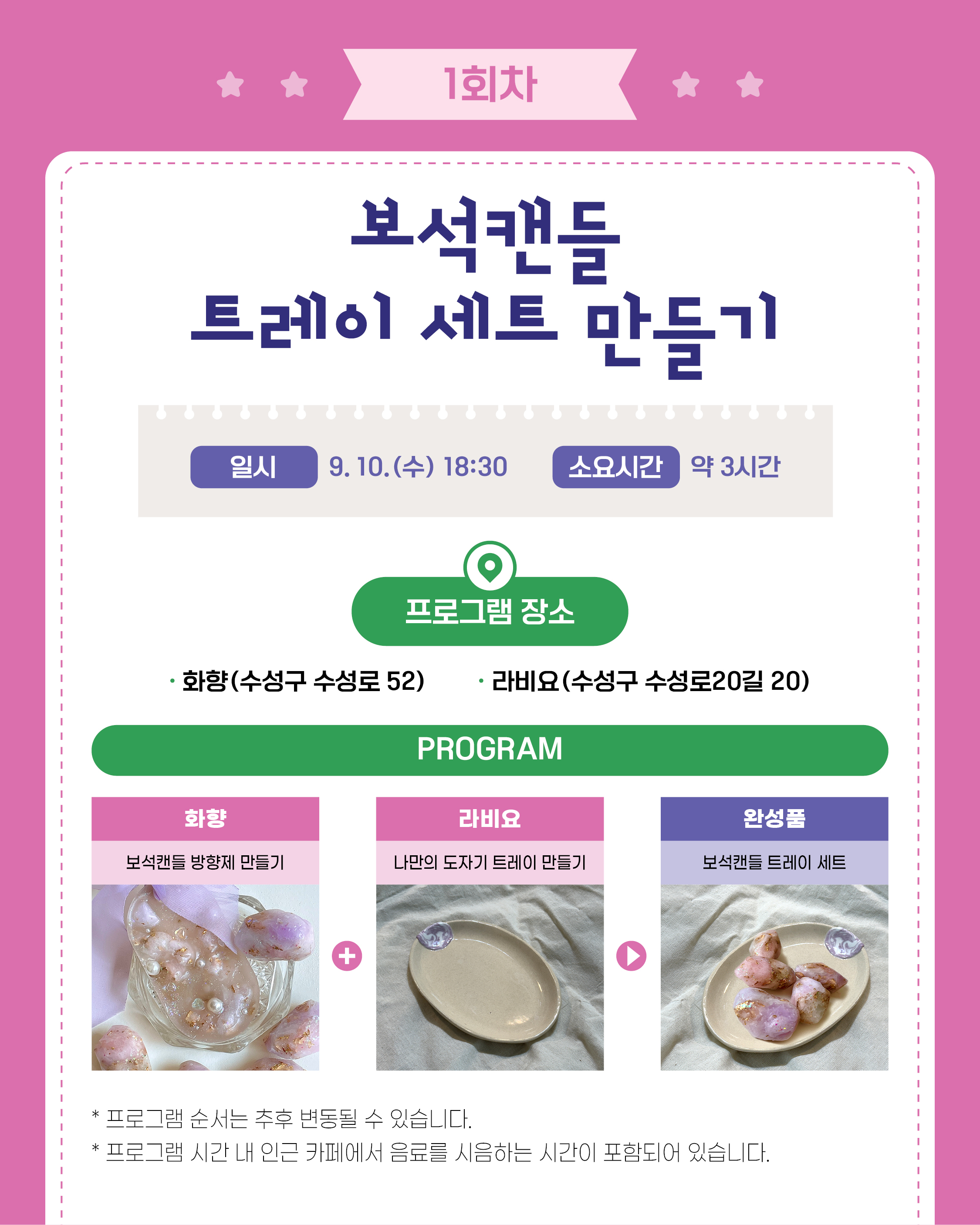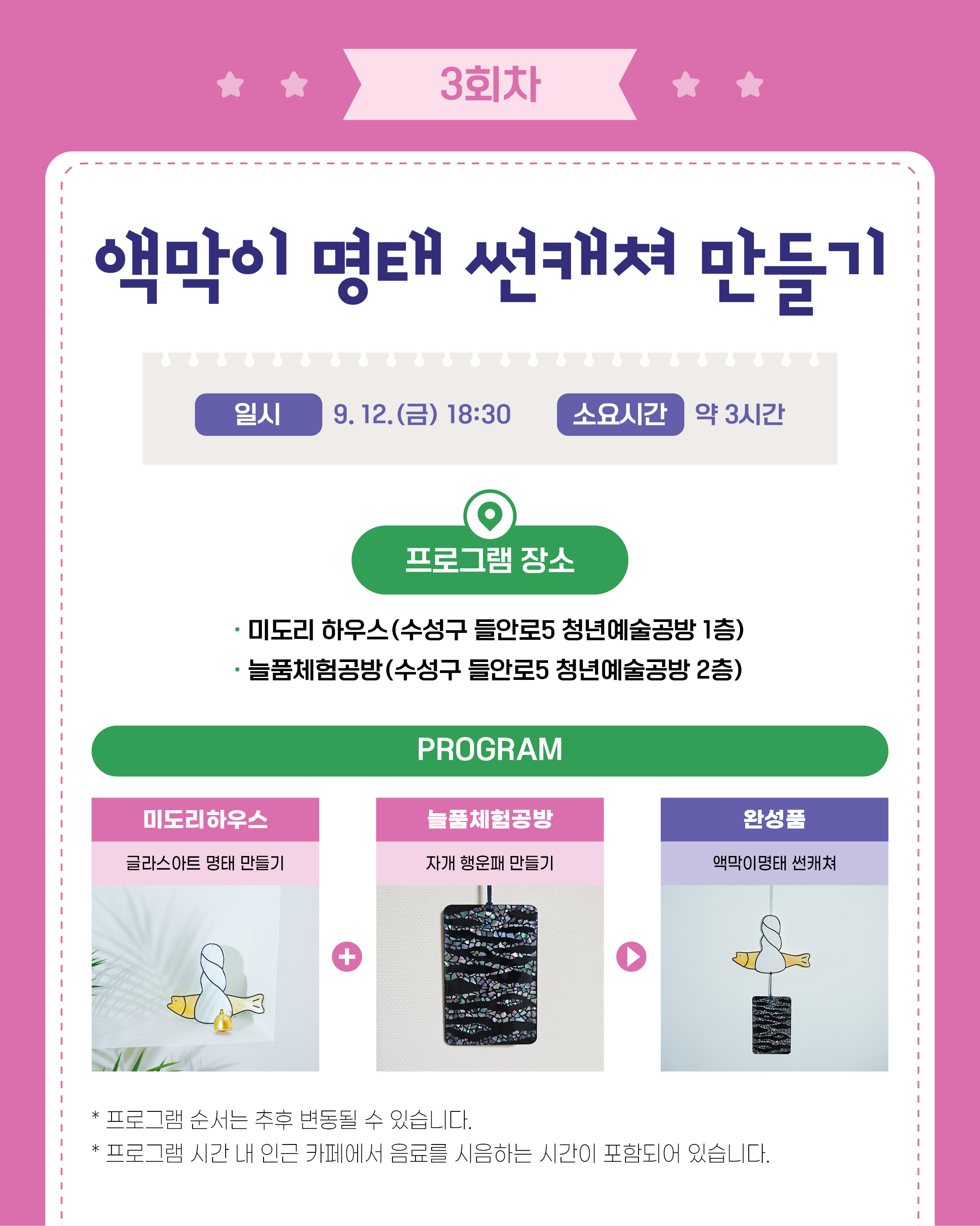 들안예술마을 일대에서 2가지 원데이클래스와 음료를 한 번에 즐기는 원데이콜라보 참여자를 모집합니다!