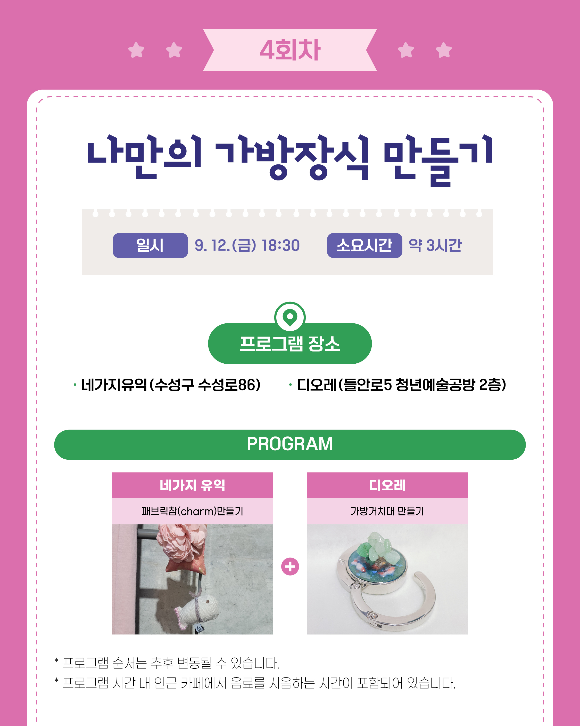 * 프로그램 회차별 10명 선착순 모집 (신청서 접수기준)