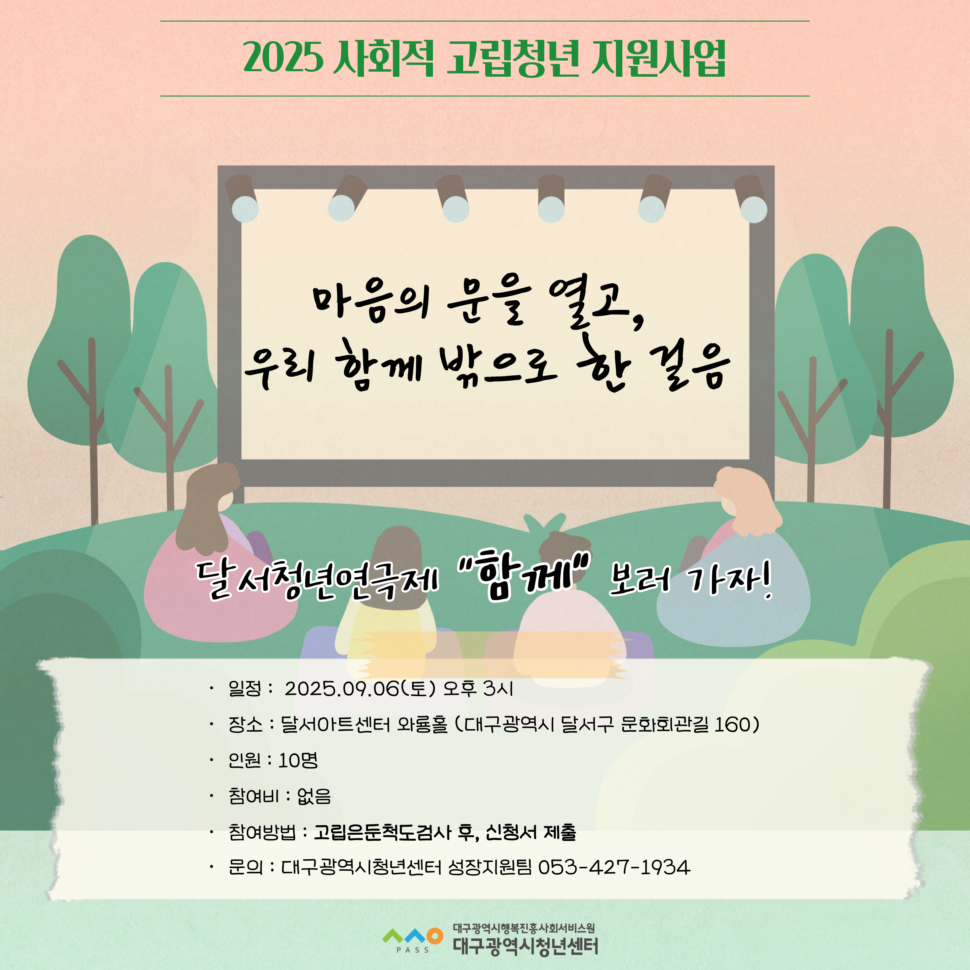 2025 사회적 고립청년 지원사업 <신체활동 프로그램> 참여자 모집작성자 : 대구청년센터 작성일 : 25-08-22 대구광역시청년센터