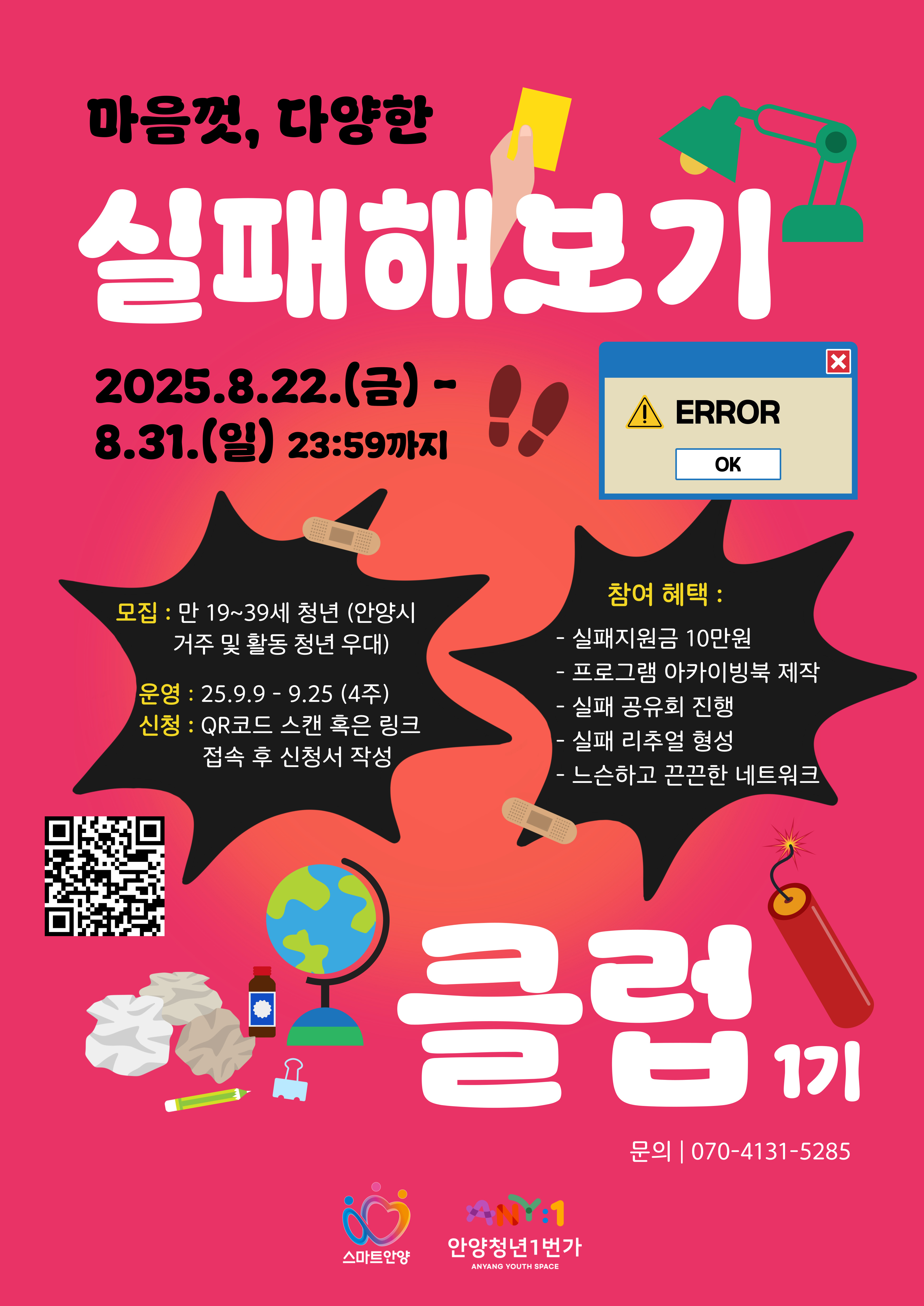 [안양청년1번가] 마음껏, 다양한 '실패해보기 클럽' 1기 모집 (~8/31)작성자 : 이정연 작성일 : 25-08-22
