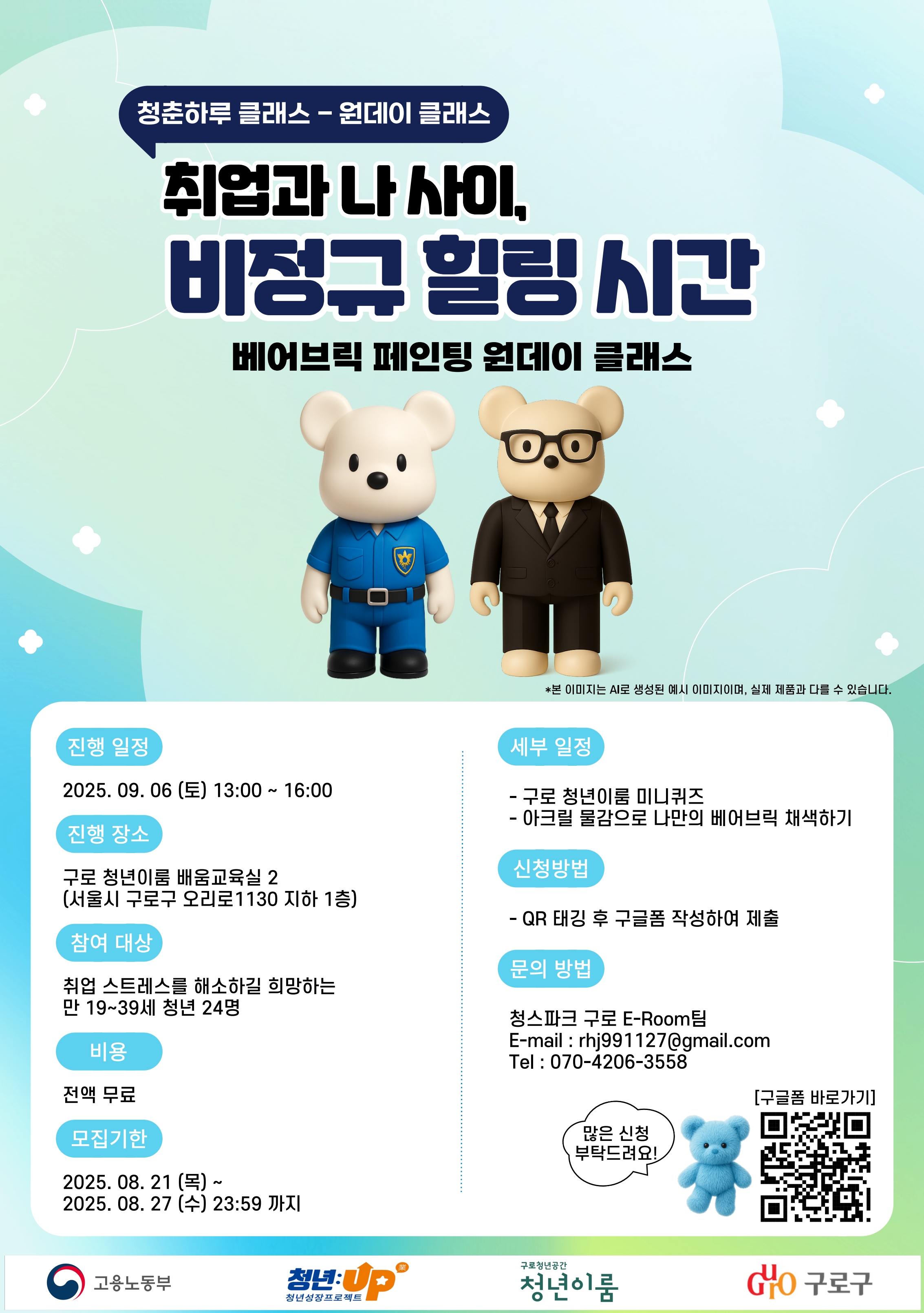 [구로 청년이룸] 청춘하루 클래스 #2. 베어브릭 페인팅 원데이클래스 참여자 모집(~9/2)작성자 : 청년이룸 작성일 : 25-08-25
