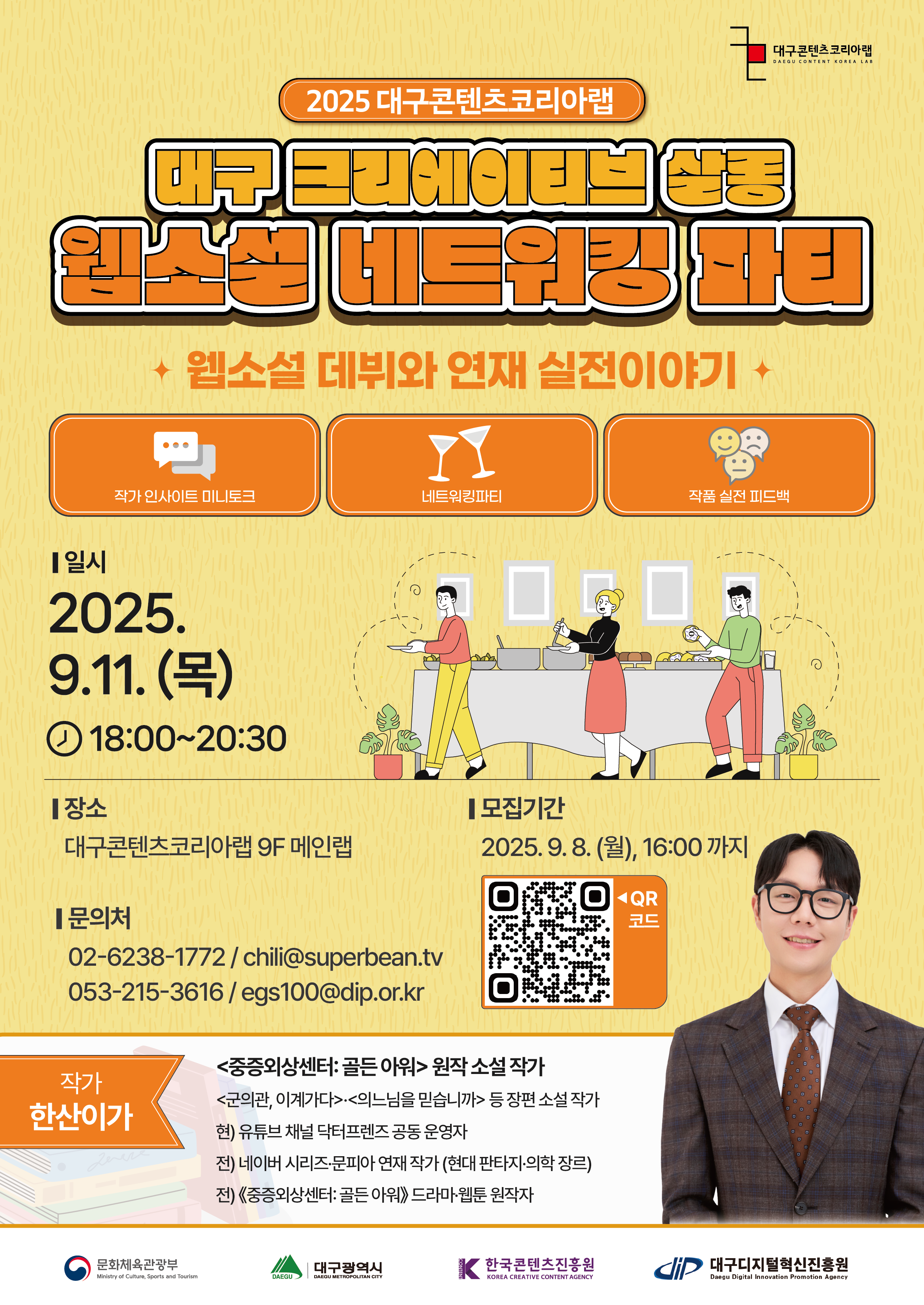 [크리에이티브살롱] 웹소설 분야 '중증외상센터' 원작자와 함께하는 네트워킹파티작성자 : 이효진 작성일 : 25-08-27