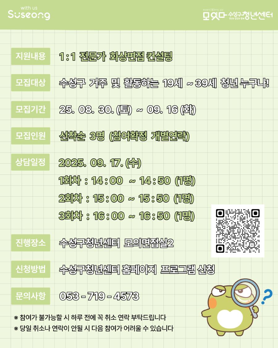 <온투유> 9월 화상 1:1 면접 컨설팅 (with 대구고용복지플러스센터)작성자 : 수성구청년센터 작성일 : 25-08-30