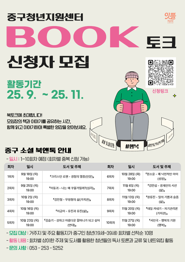 [중구청년지원센터]중구청년 소셜 북토크 신청자 모집작성자 : 김주호 작성일 : 25-09-11
