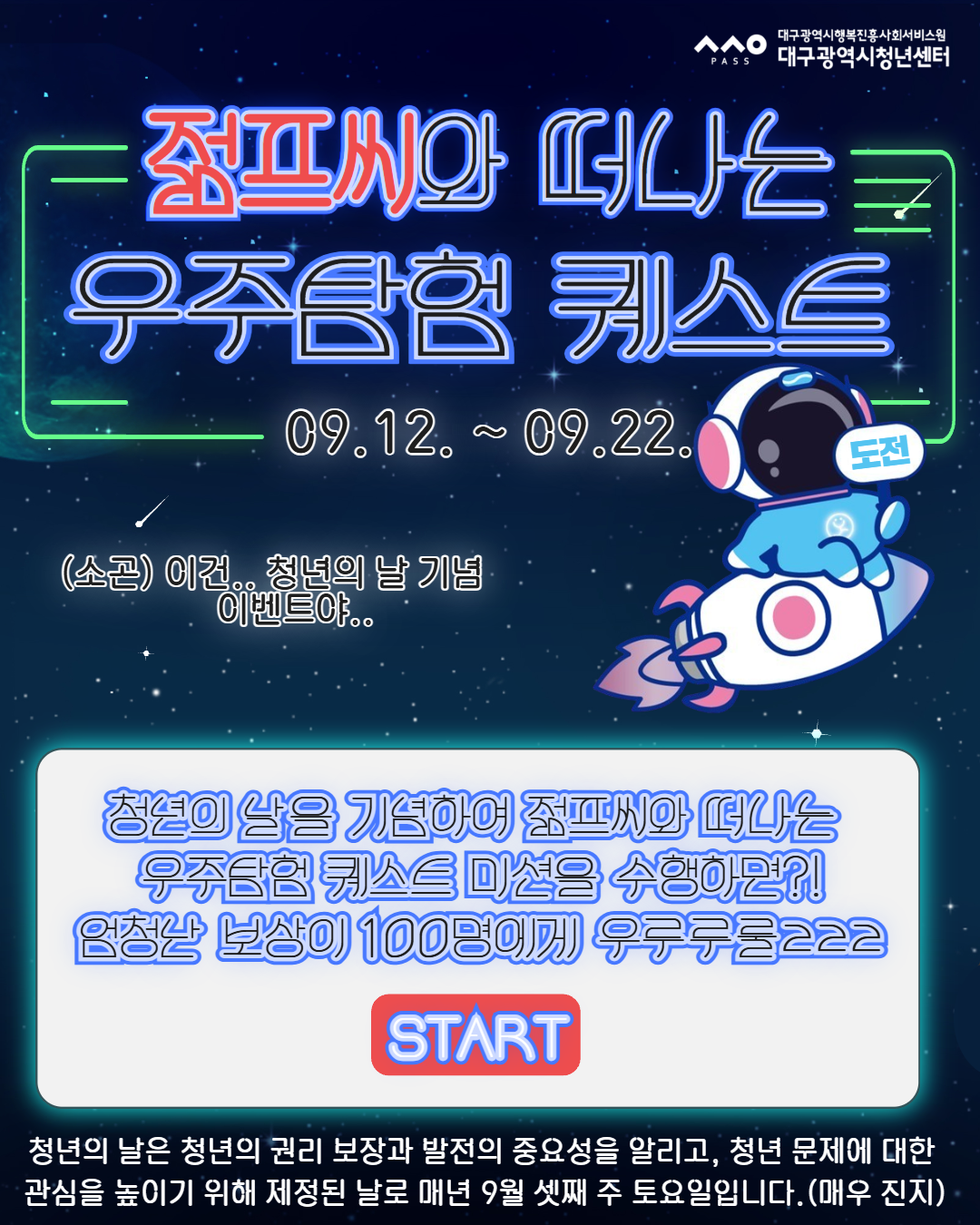 청년의 날 기념 이벤트작성자 : 대구청년센터 작성일 : 25-09-15 대구광역시청년센터