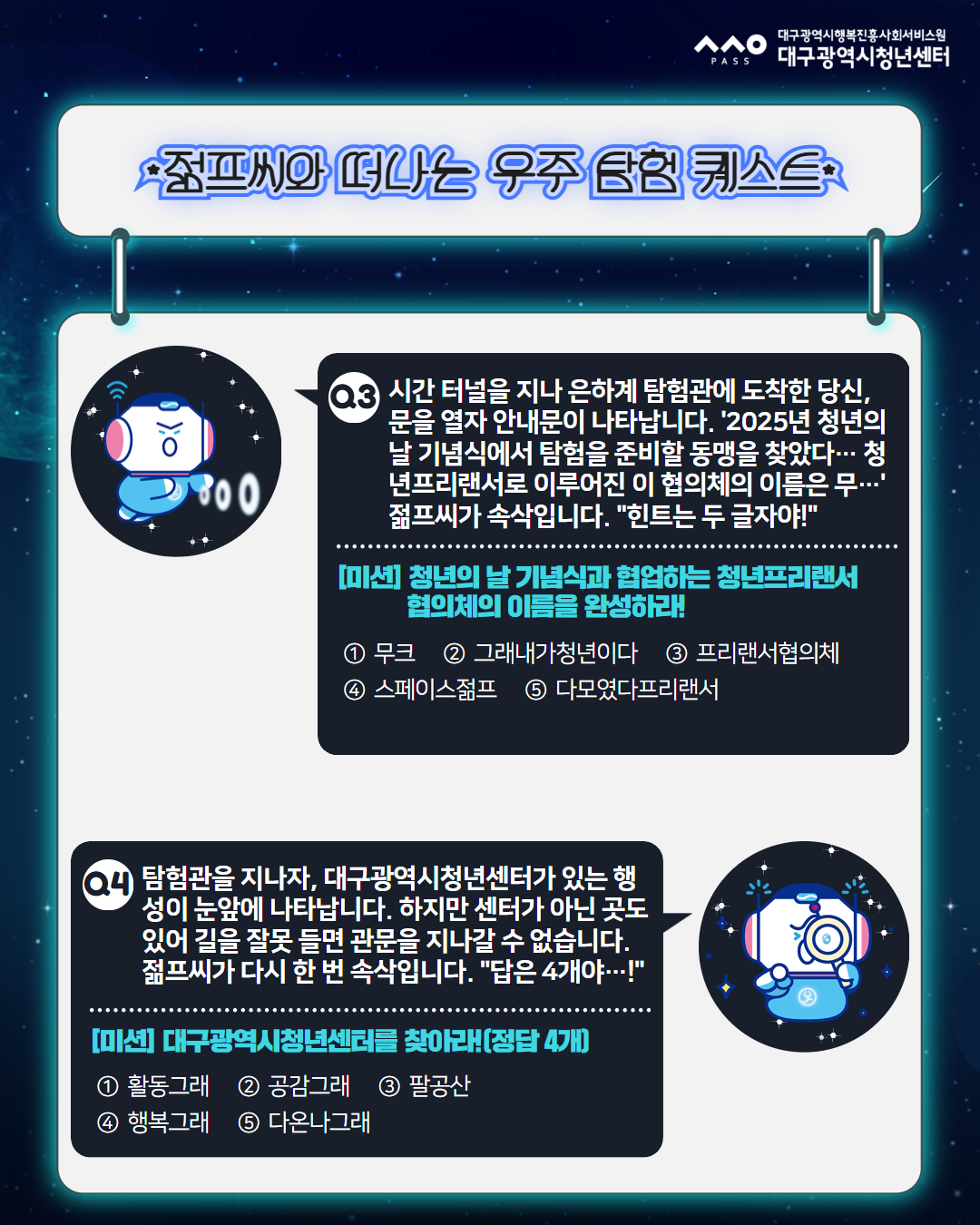 2. 젊프씨와 떠나는 우주탐험 퀘스트 풀기