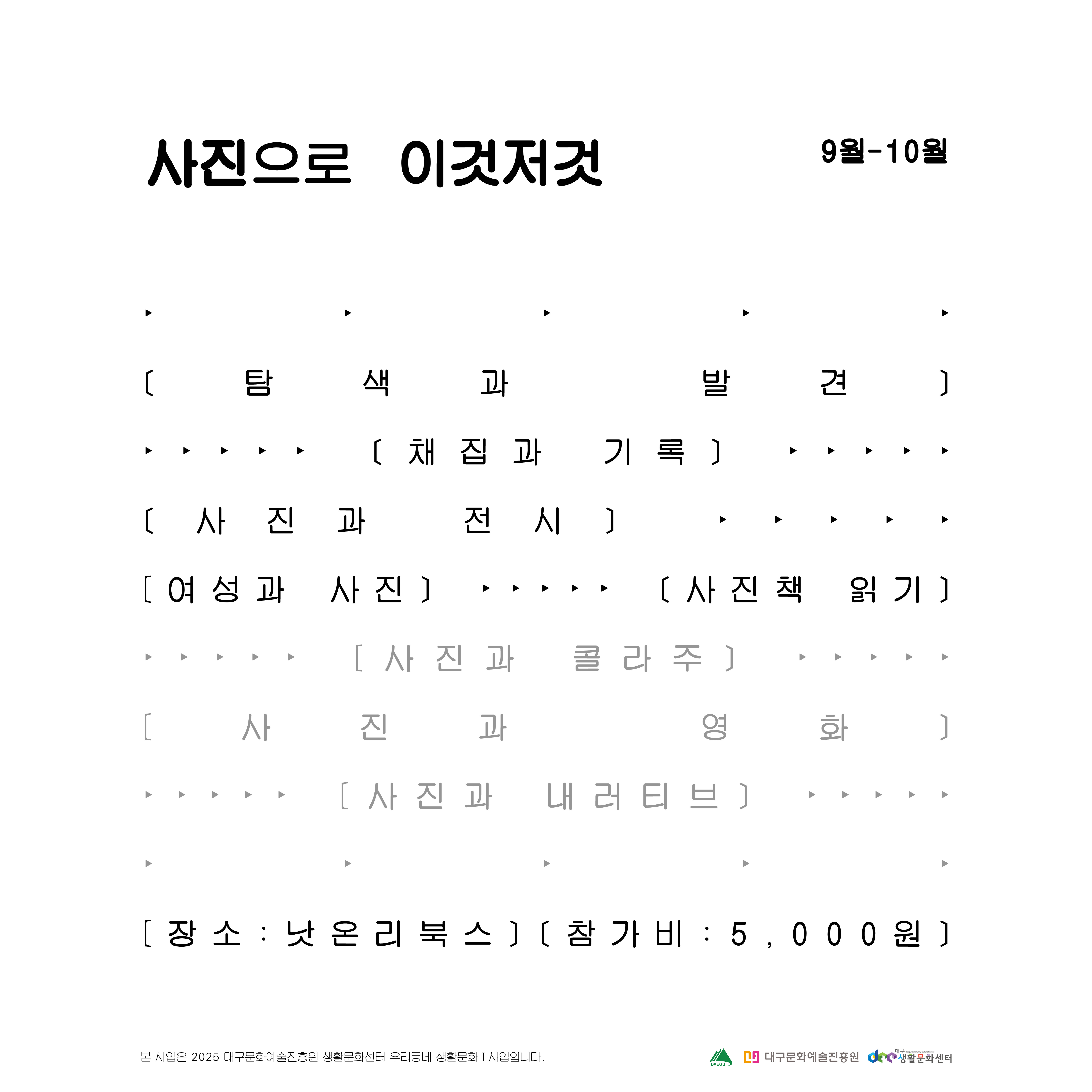 본 사업은 2025 대구문화예술진흥원 생활문화센터 우리동네 생활문화 Ⅰ 사업입니다.