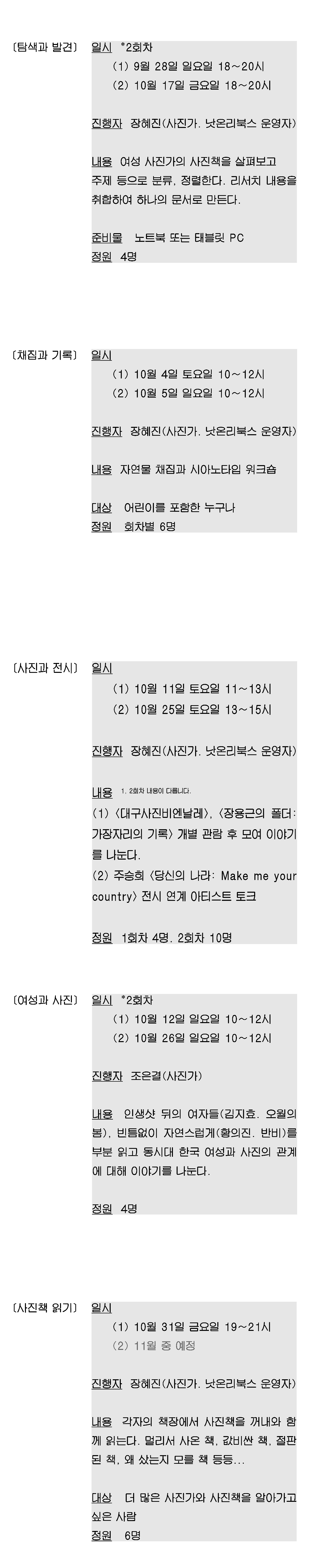 사진을 좋아하는 사람, 사진책이 어려운 사람, 전공자와 비전공자, 낫온리북스가 하는 일이 궁금한 사람. 모두 모여 사진으로 이것저것 해보며 작은 서점의 가능성을 실험해 봅시다.