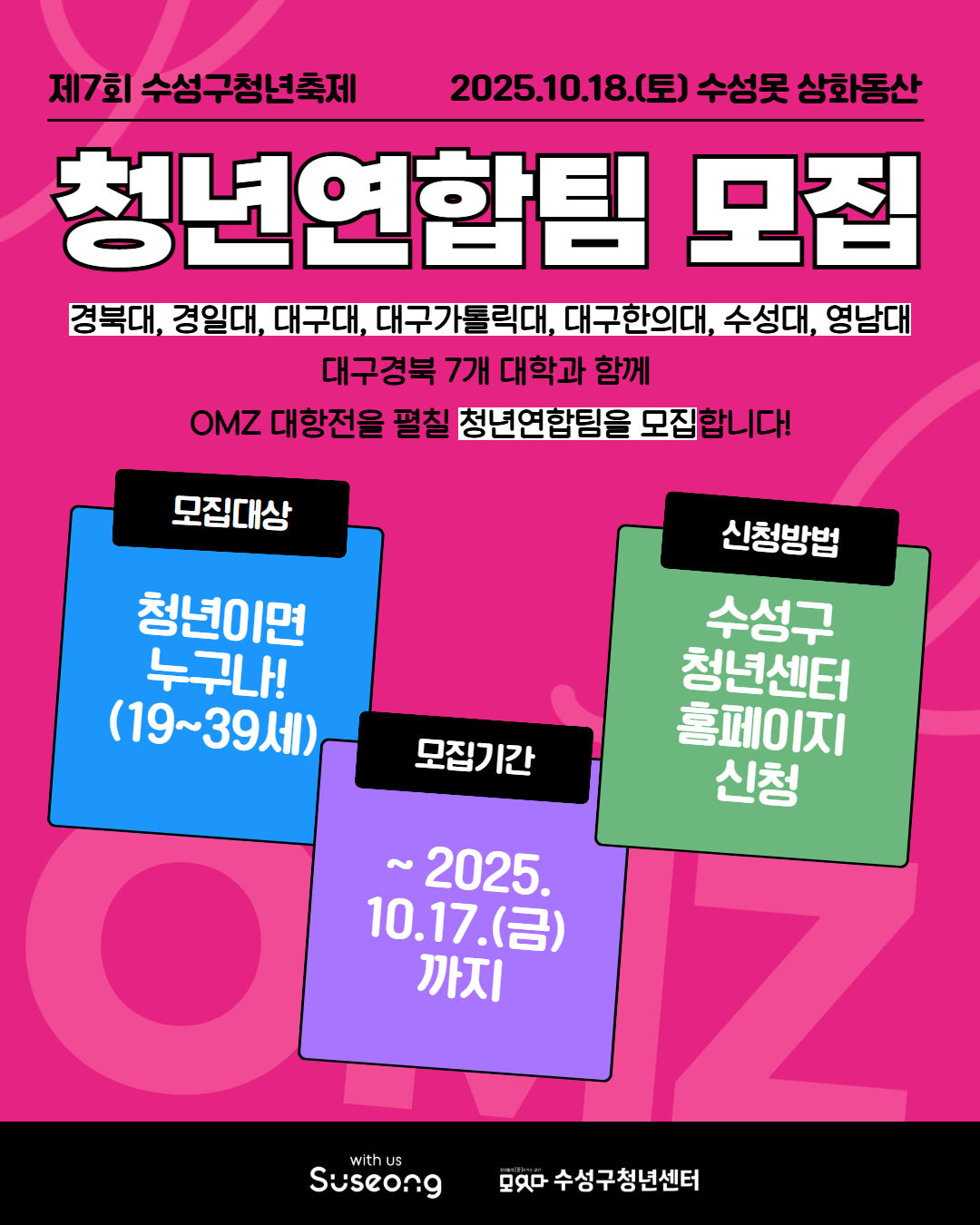 (기간연장) 2025 제7회 수성구청년축제 청년연합팀을 모집합니다.💙🎇작성자 : 수성구청년센터 작성일 : 25-09-29