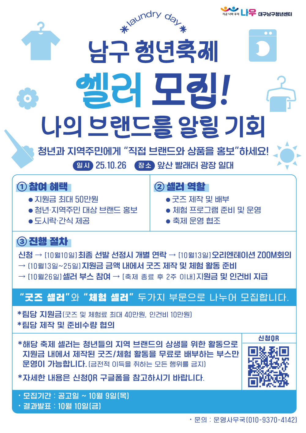 [남구청년센터] 남구 청년축제 굿즈/체험 셀러 모집!작성자 : 이경호 작성일 : 25-09-29