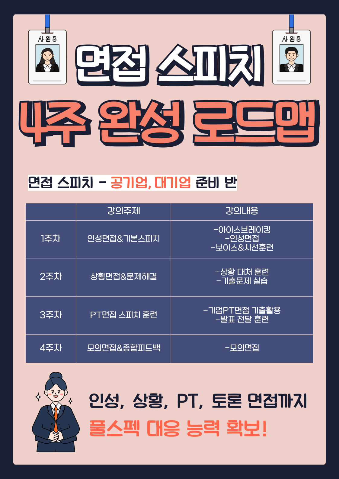 4주 동안 풀스펙 면접대응 능력을 완성할 수 있습니다.
