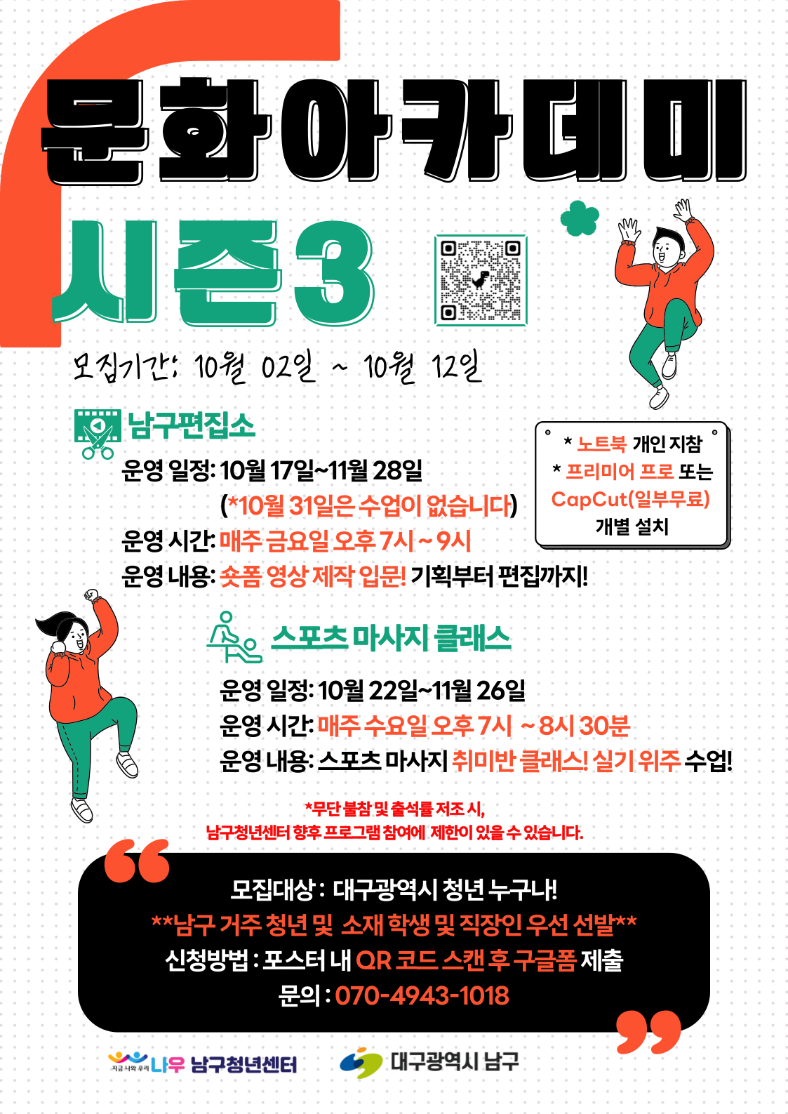 👉 남구 거주 청년 및 남구 소재 학생·직장인 우선 선발