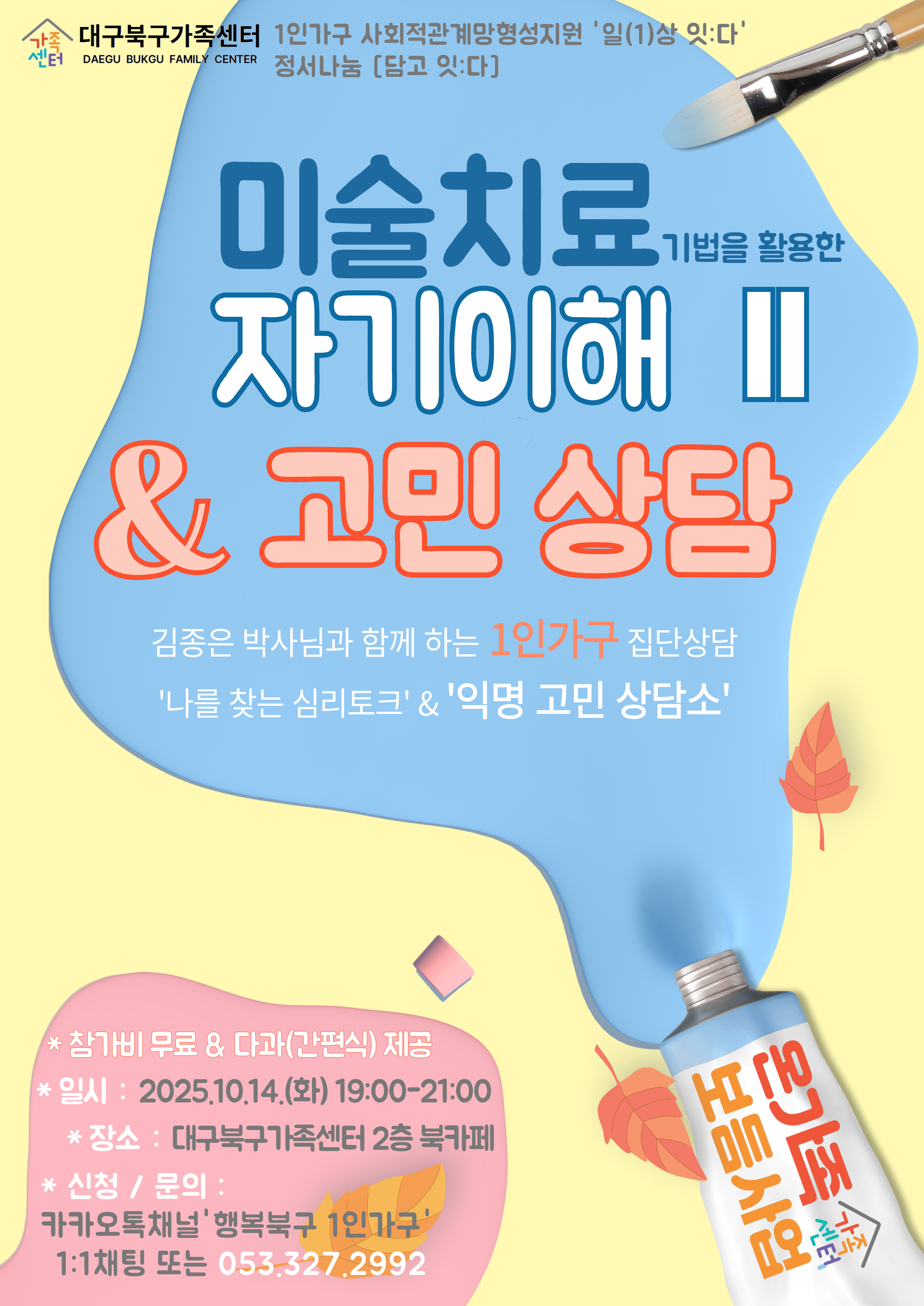 - 신청 및 문의 : 카카오톡 채널 '행복북구 1인가구' 1:1 채팅 또는
