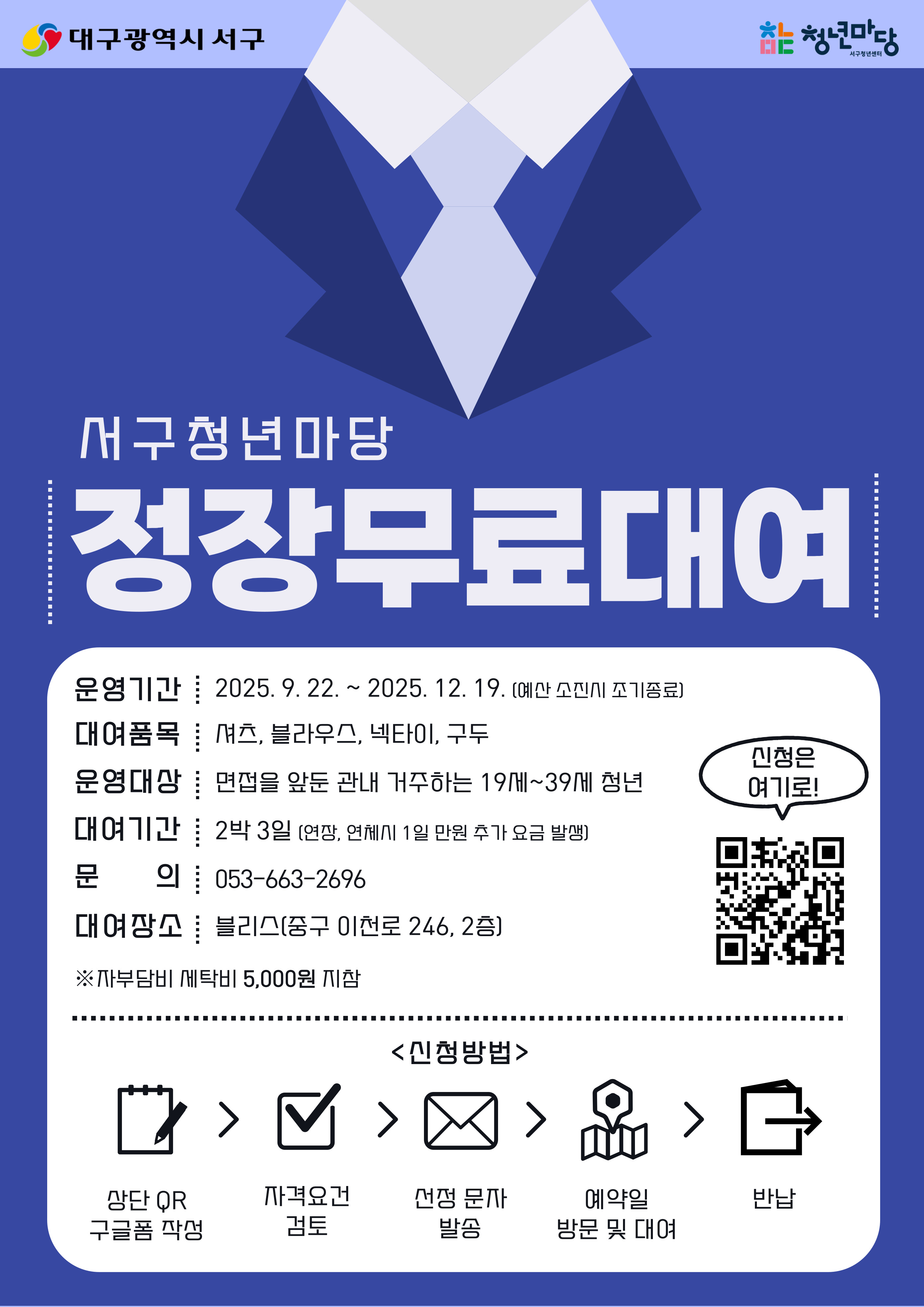 [서구청년마당] 정장무료대여👔✨작성자 : 양예린 작성일 : 25-10-14