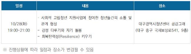 - 심리지원(집단상담) 시즌2에 참여했던 참여자만 신청 가능
