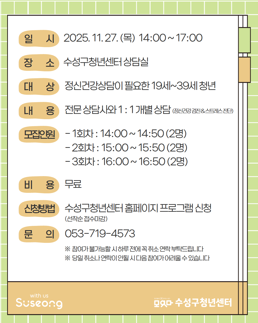 - 053-719-4573 / ssyc@suseongyouth.or.kr