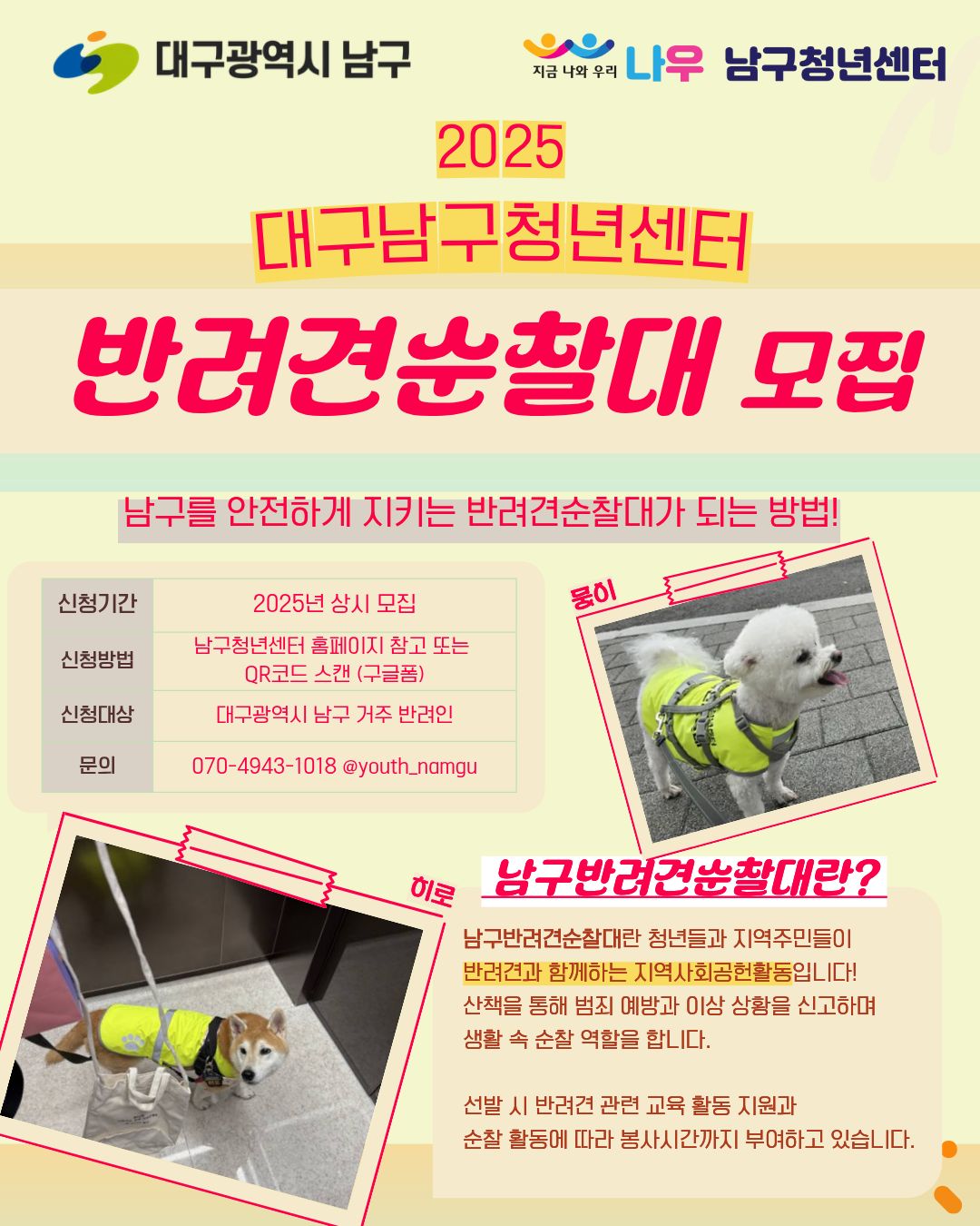 📢 2025 대구남구청년센터 반려견순찰대 모집