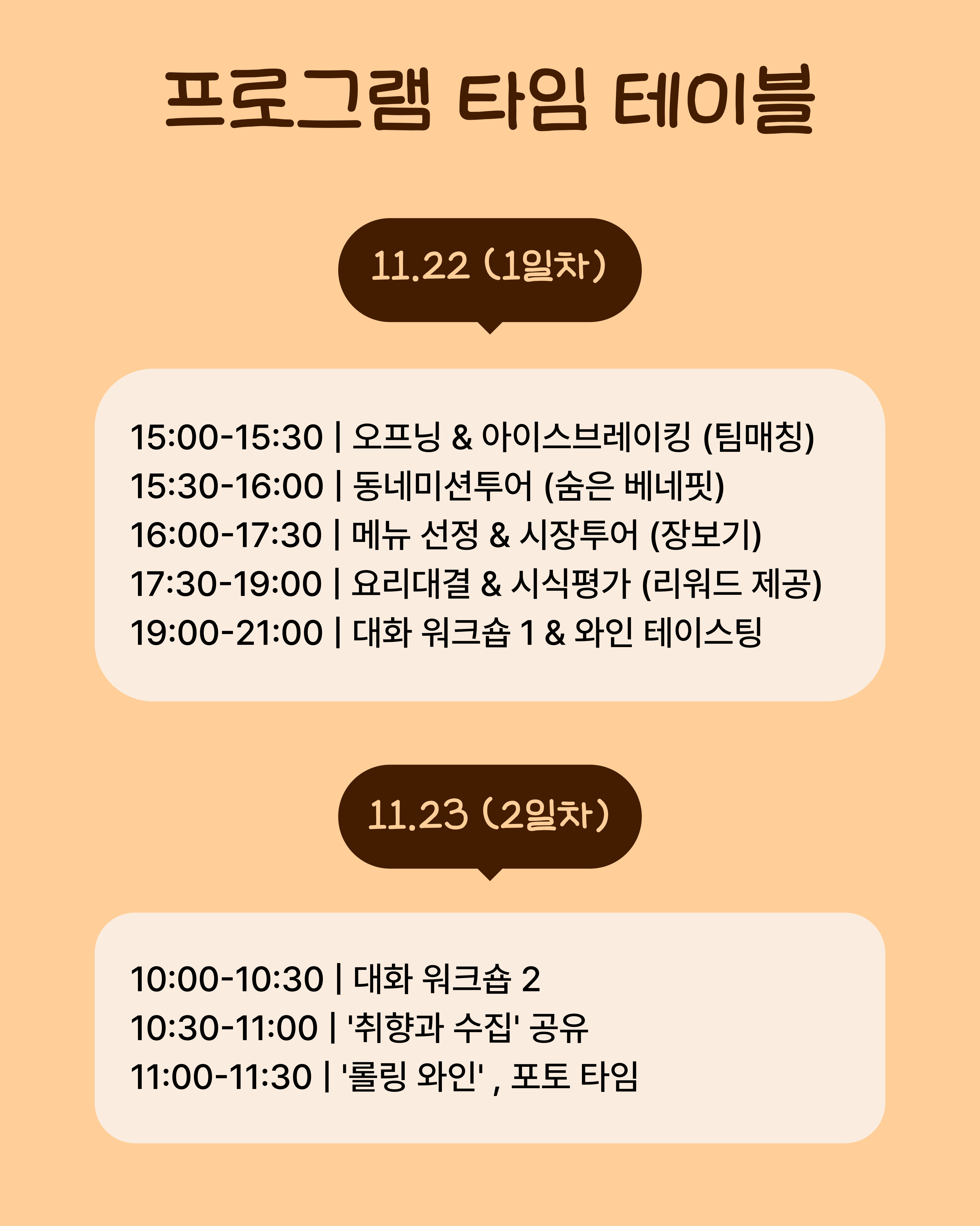 📆프로그램 일정 : 11.22(토)~23(일) 1박2일