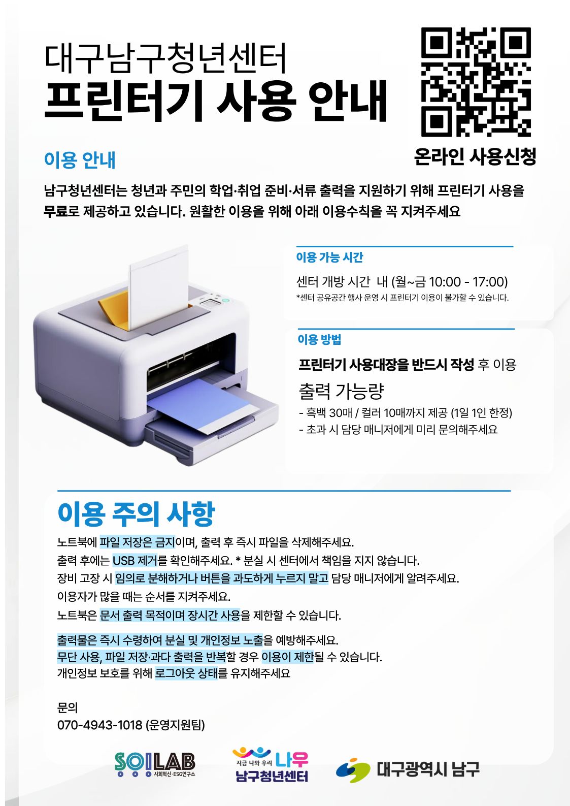 🖨️ 대구남구청년센터 프린터기 무료 이용 안내📄✨
