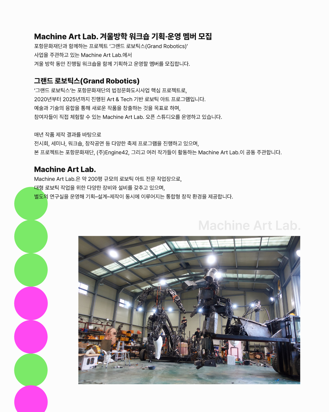 Machine Art Lab. 겨울방학 워크숍 멤버 모집