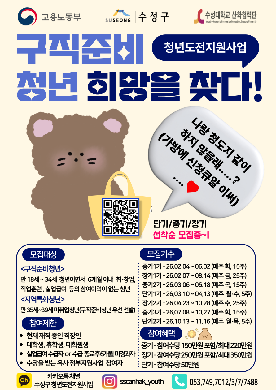 2026 수성구 청년도전지원사업 사전접수 모집중작성자 : 박지민 작성일 : 25-12-24