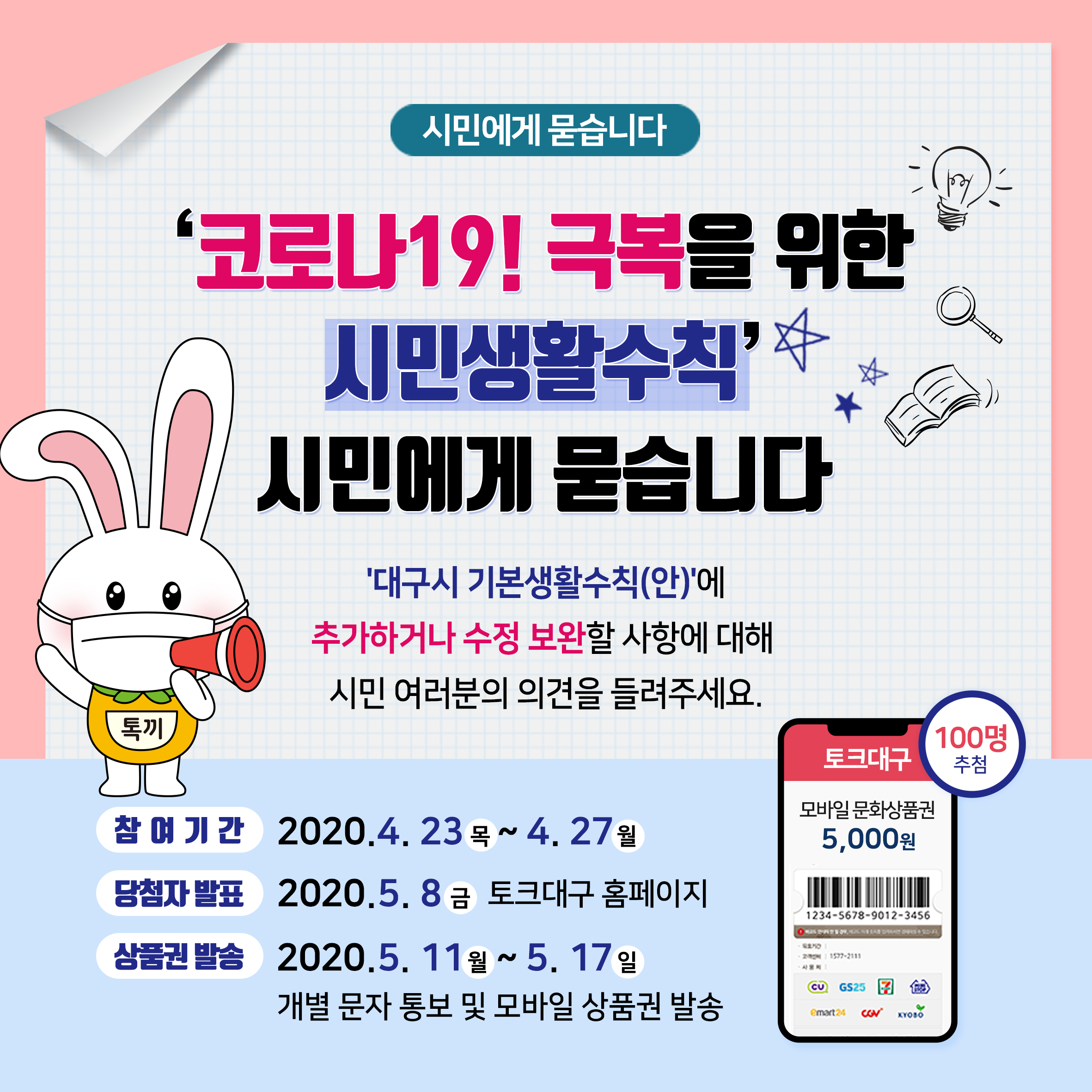 '대구시 기본생활수칙(안)'에 추가하거나 수정 보완할 사항에 대해