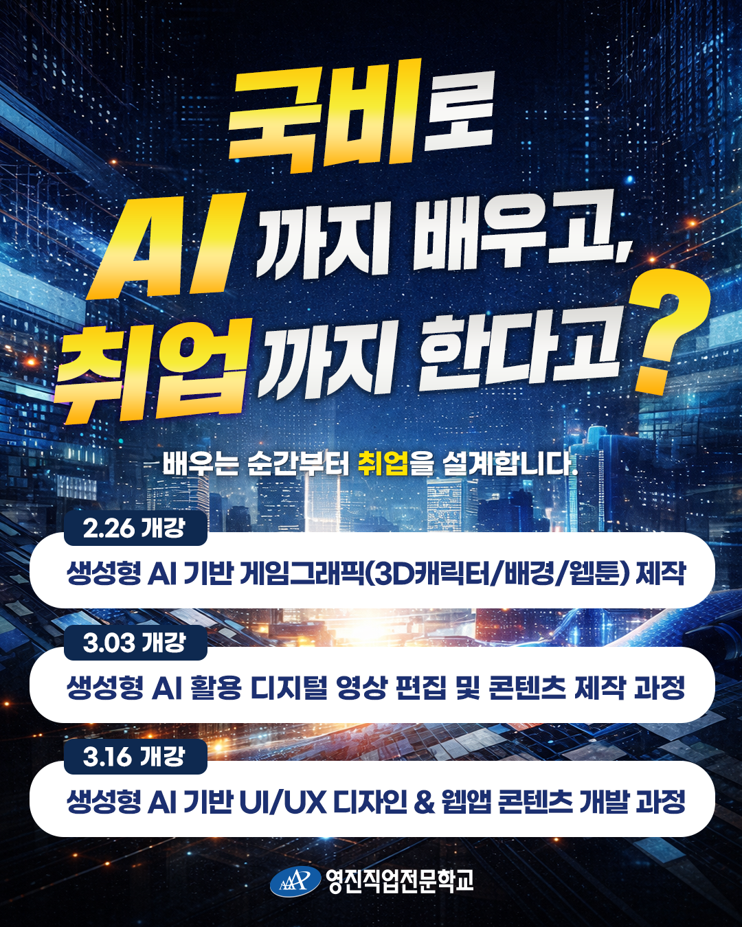 [국비지원교육] 요즘 뜨는 AI 실무 스킬, 국비지원으로 끝내기|게임그래픽·영상·UI/UX 웹앱작성자 : 박서은 작성일 : 26-01-15