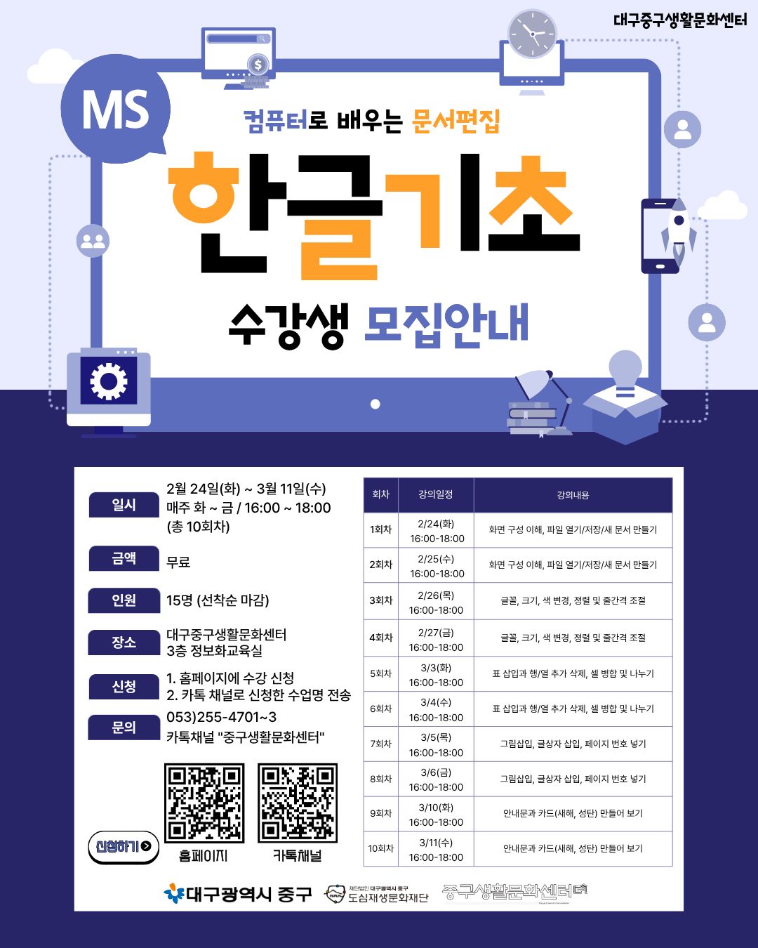 📍강의장소 : 대구중구생활문화센터 3층 정보화교육실