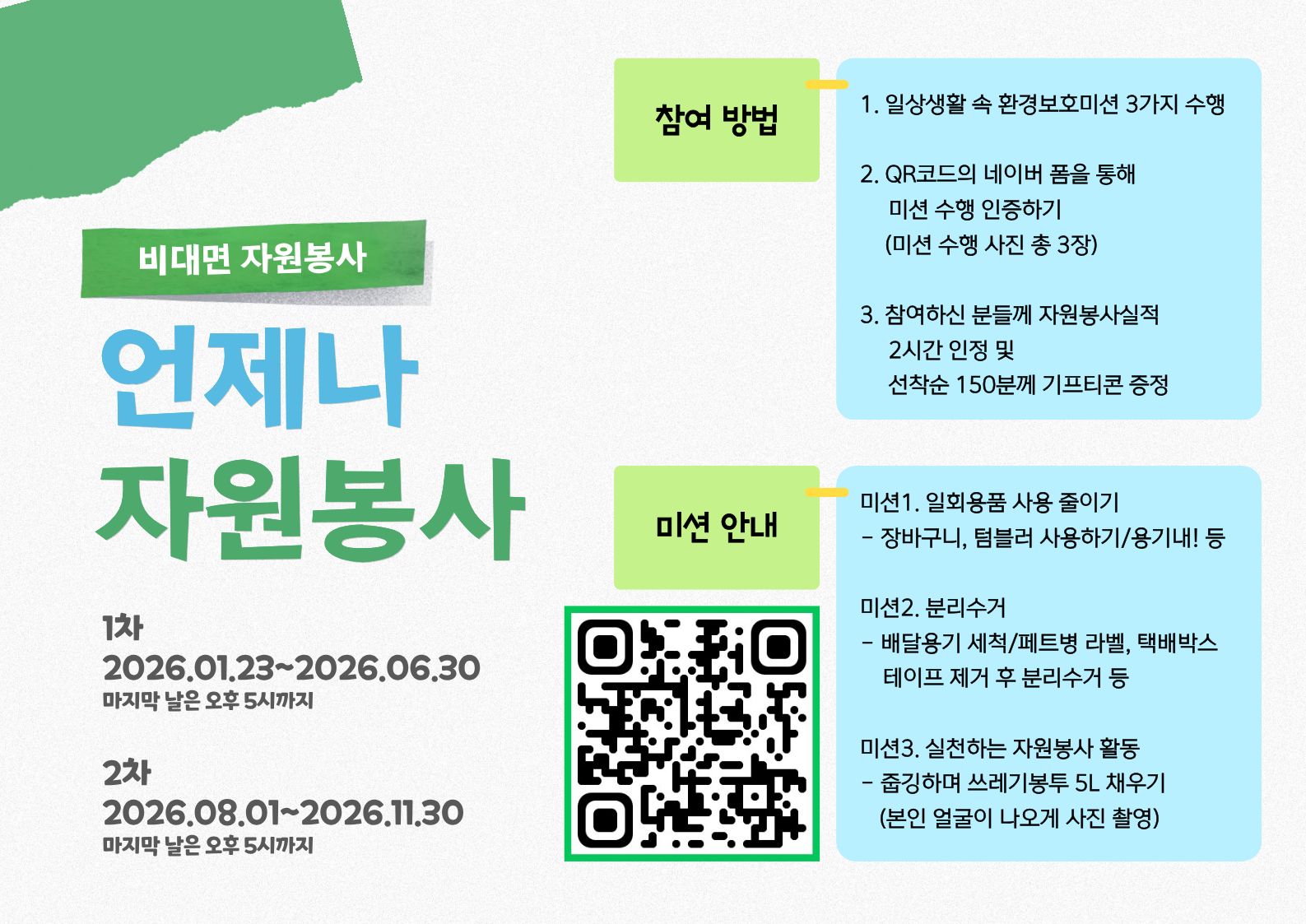언제나 자원봉사(비대면/환경)작성자 : 방혜린 작성일 : 26-01-23