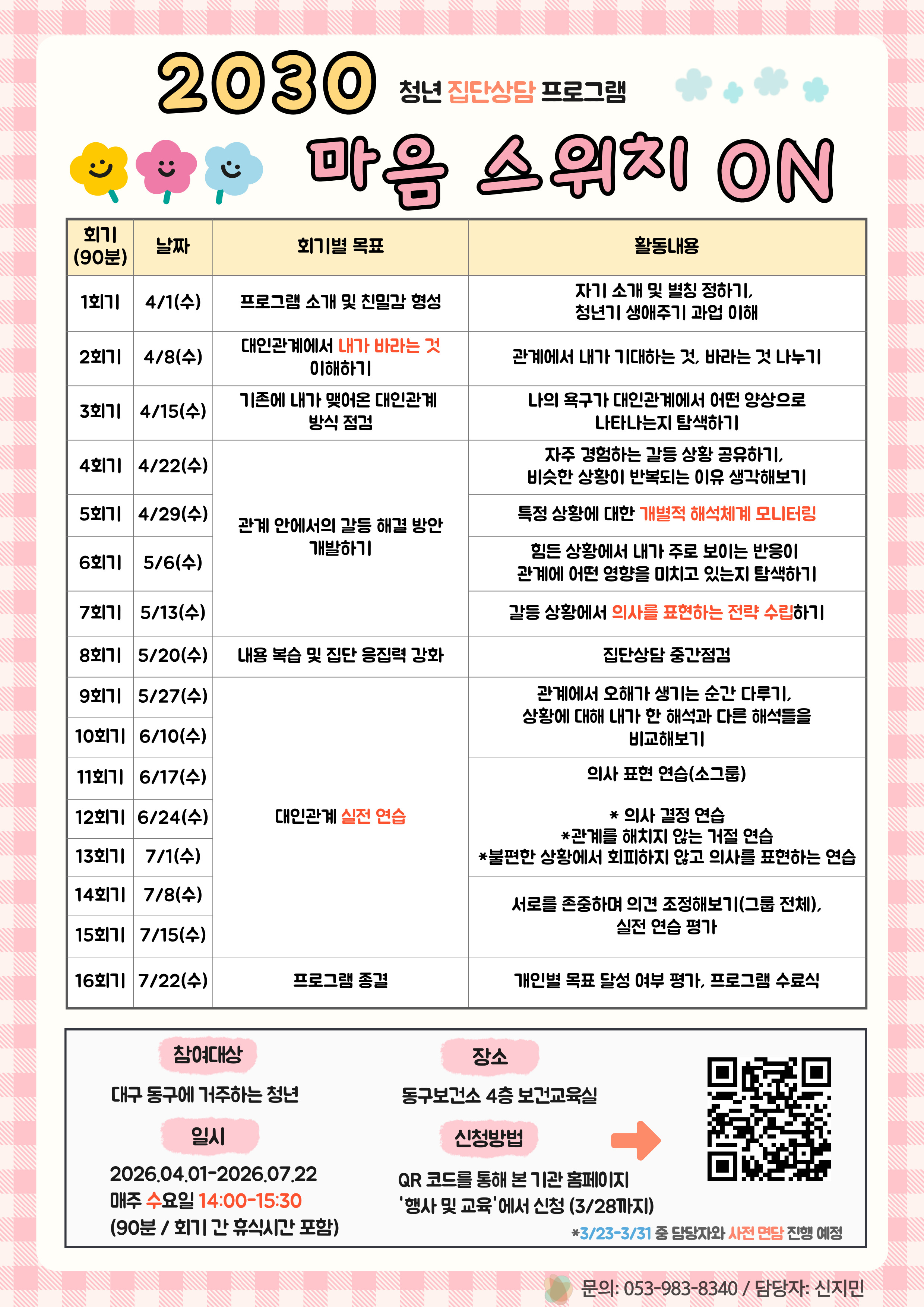 2030, 마음 스위치 ON [청년 집단상담] 참여자 모집작성자 : 신지민 작성일 : 26-01-30