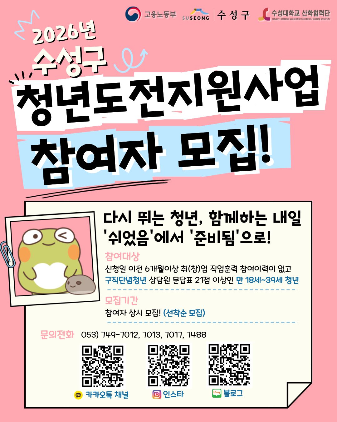 2026 수성구 청년도전지원사업 신청자 모집작성자 : 임은지 작성일 : 26-02-12