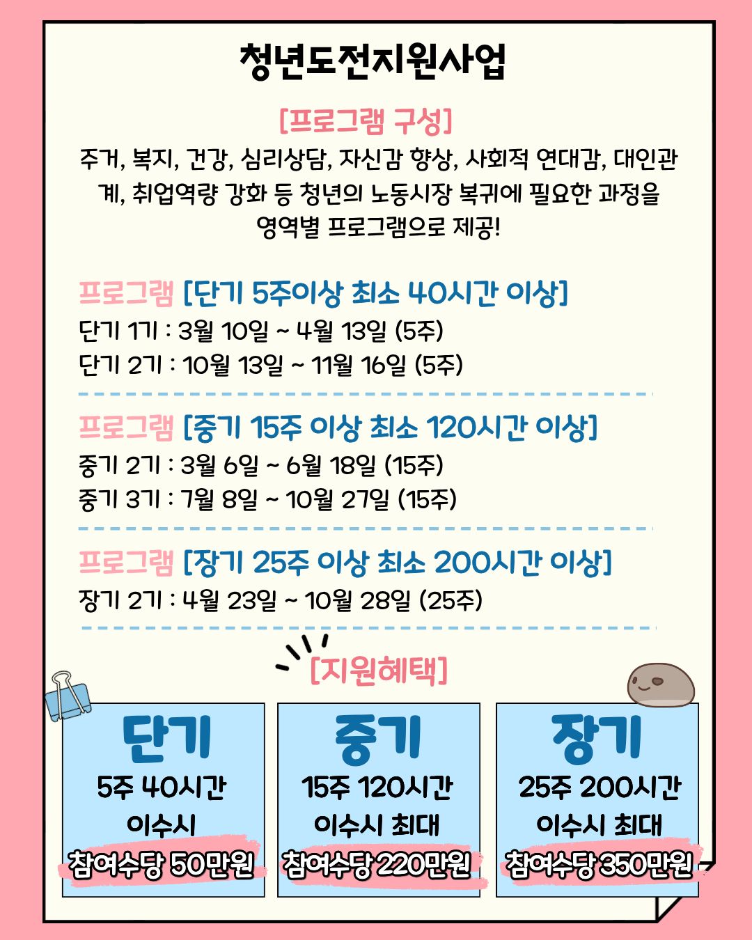 각 사업의 정보 및 신청 등 사업·프로그램 문의는 게시글 내 담당기관으로 문의 바랍니다.
