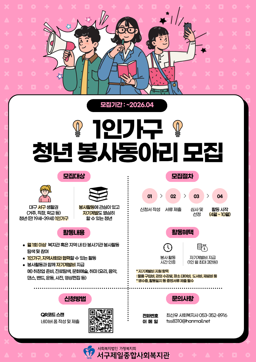 1인가구 청년 봉사동아리 모집작성자 : 최신우 작성일 : 26-02-19