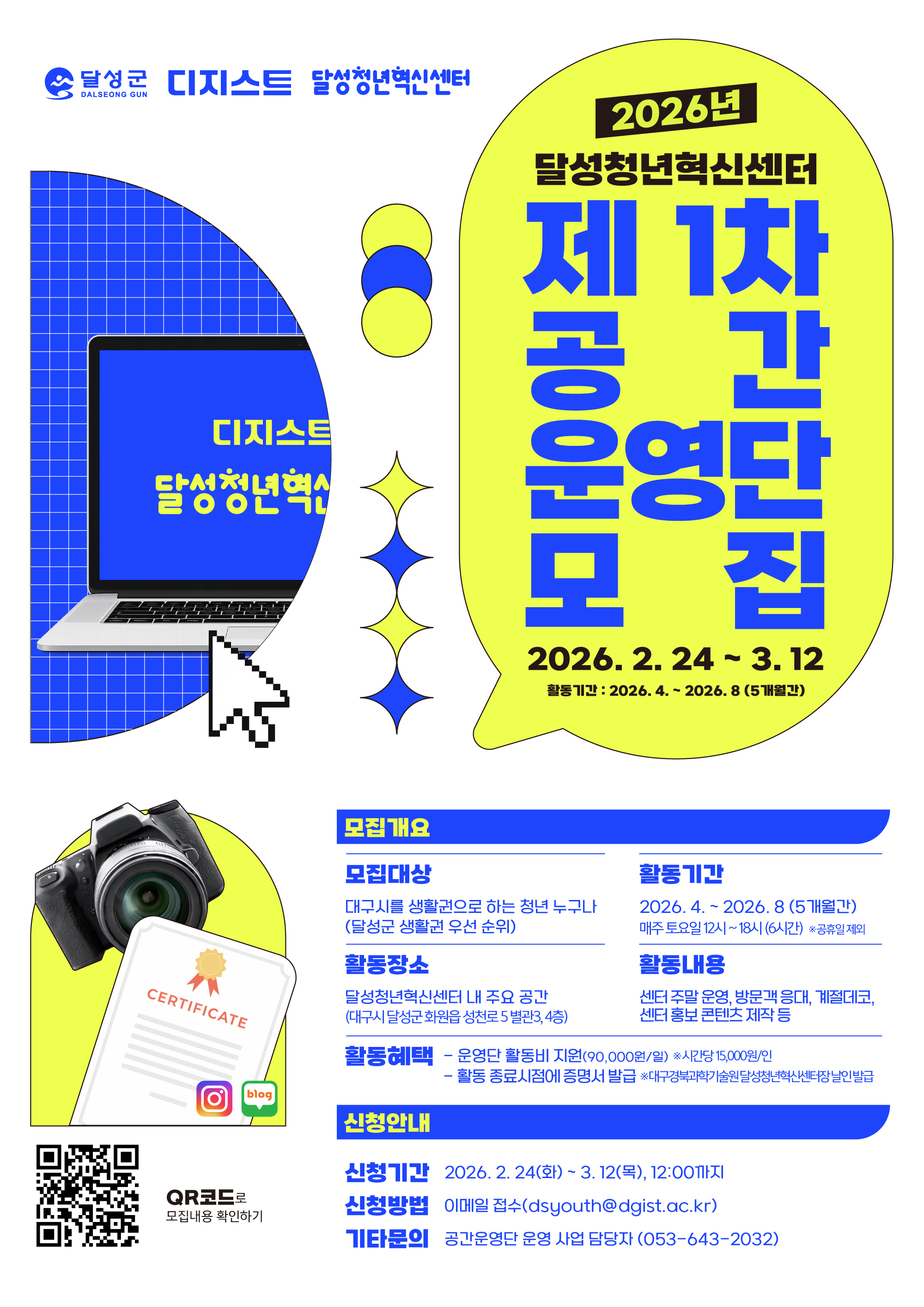 2026년 달성청년혁신센터 제1차 공간운영단 모집작성자 : 김태희 작성일 : 26-02-23