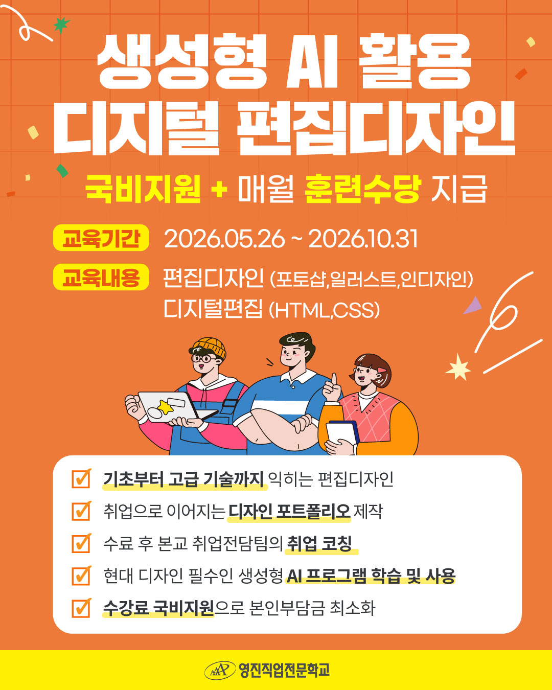 본 과정은 대구 국비지원 교육으로, 4차 산업혁명 시대에 필수적인 디지털 편집 디자인 기술을 배우는 과정입니다.