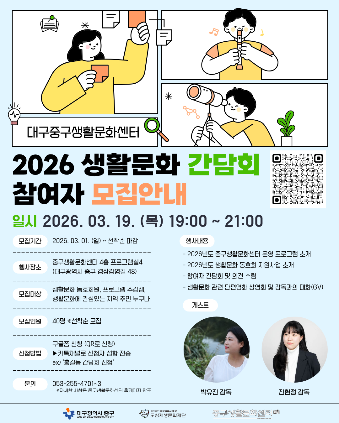 2026년 대구중구생활문화센터 생활문화 간담회에 여러분을 초대합니다( ˶'ᵕ'🫶)💕