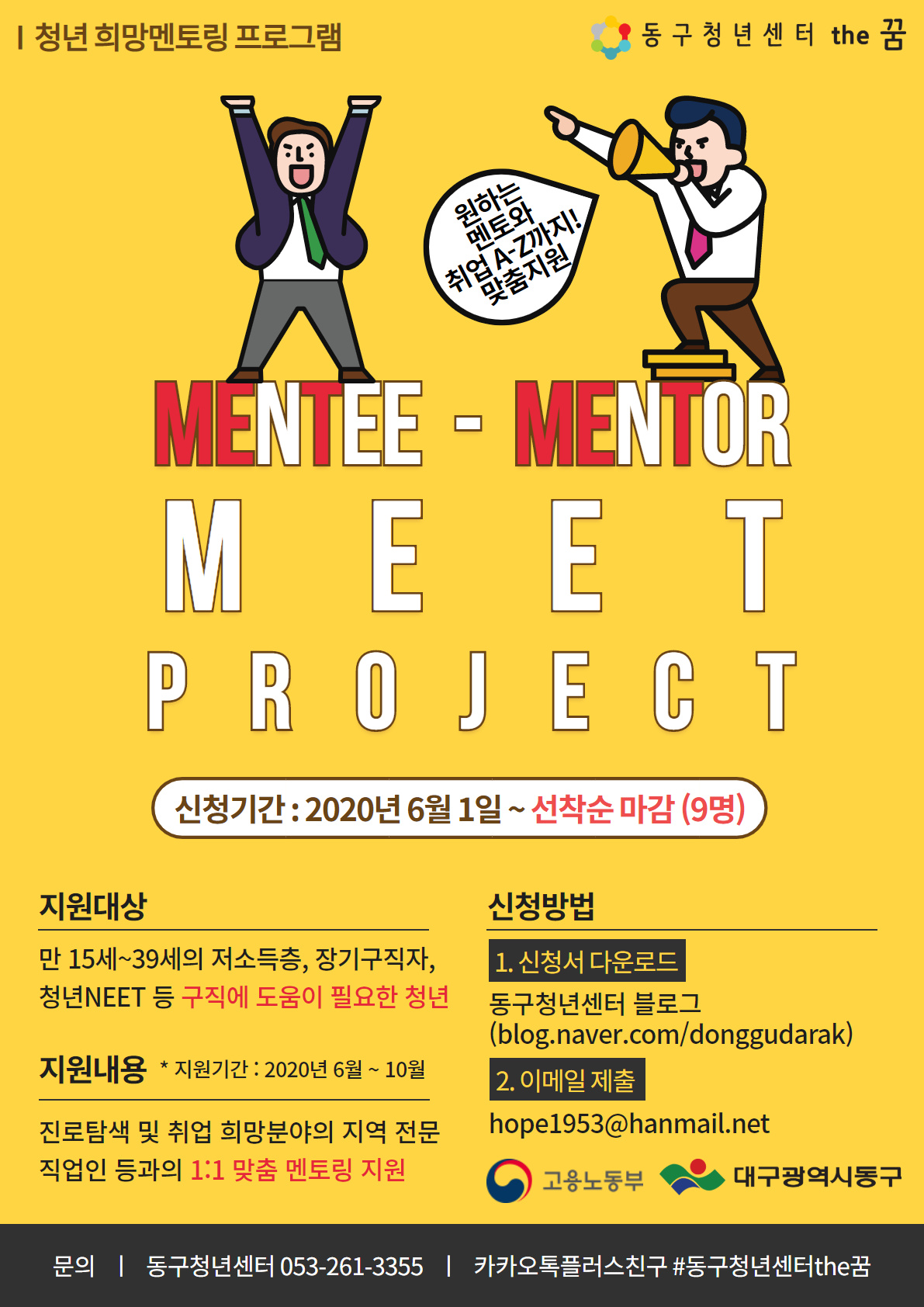 2020 맞춤형 1:1 멘토링 지원 'MEET' 모집작성자 : 박소진 작성일 : 20-05-19