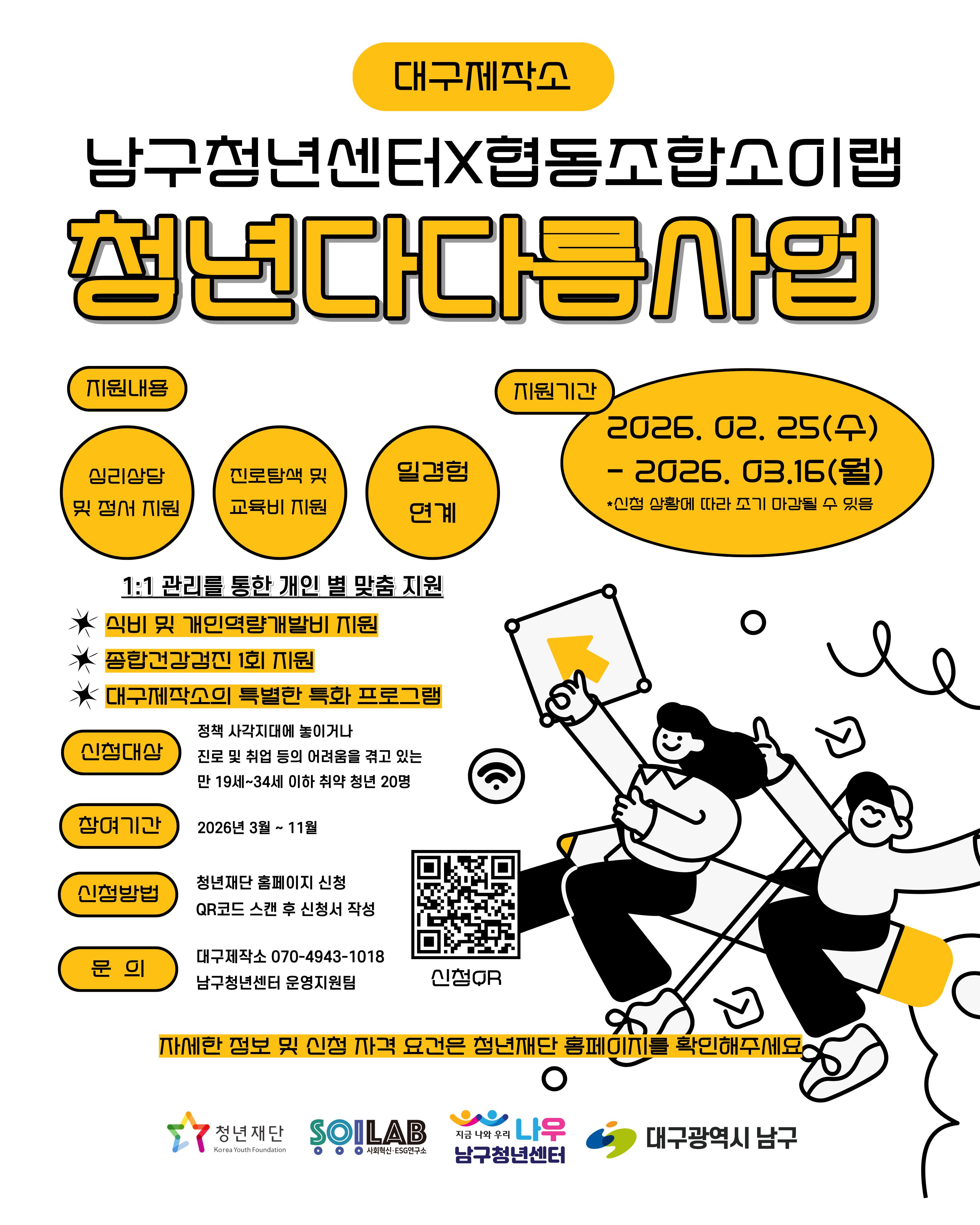 2026년 대구제작소 '청년다다름사업' 참여자 모집작성자 : 이경호 작성일 : 26-03-04