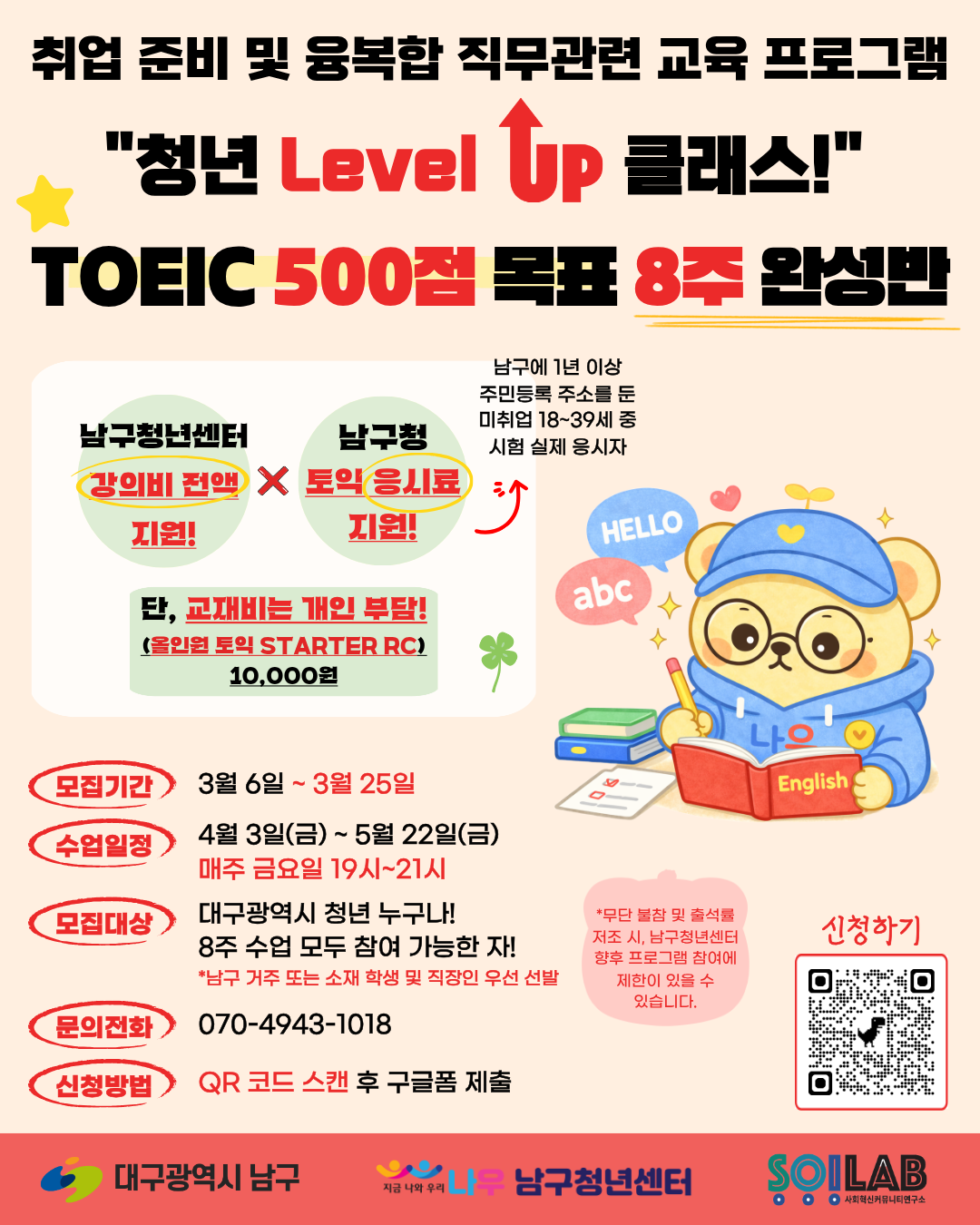 📚 TOEIC 500점 목표! 토익 8주 완성반 OPEN!작성자 : 이민지 작성일 : 26-03-06
