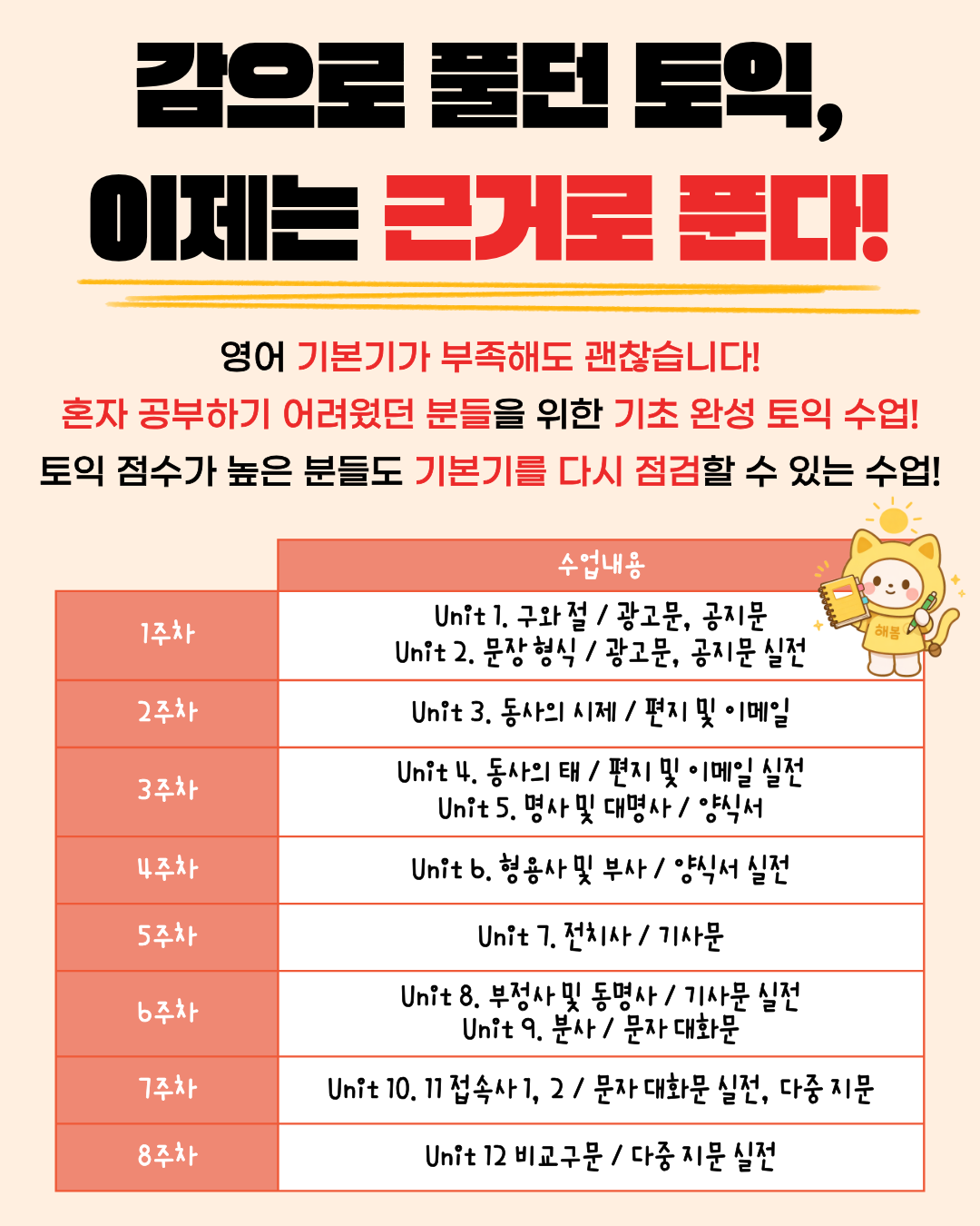 📚 TOEIC 500점 목표! 8주 완성반 OPEN!