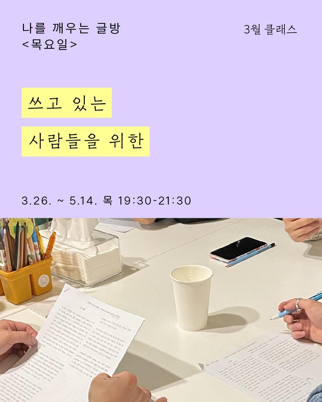 [모집] 쓰고 있는 사람들을 위한 나를 깨우는 글방 / 목요일반작성자 : 송하영 작성일 : 26-03-10