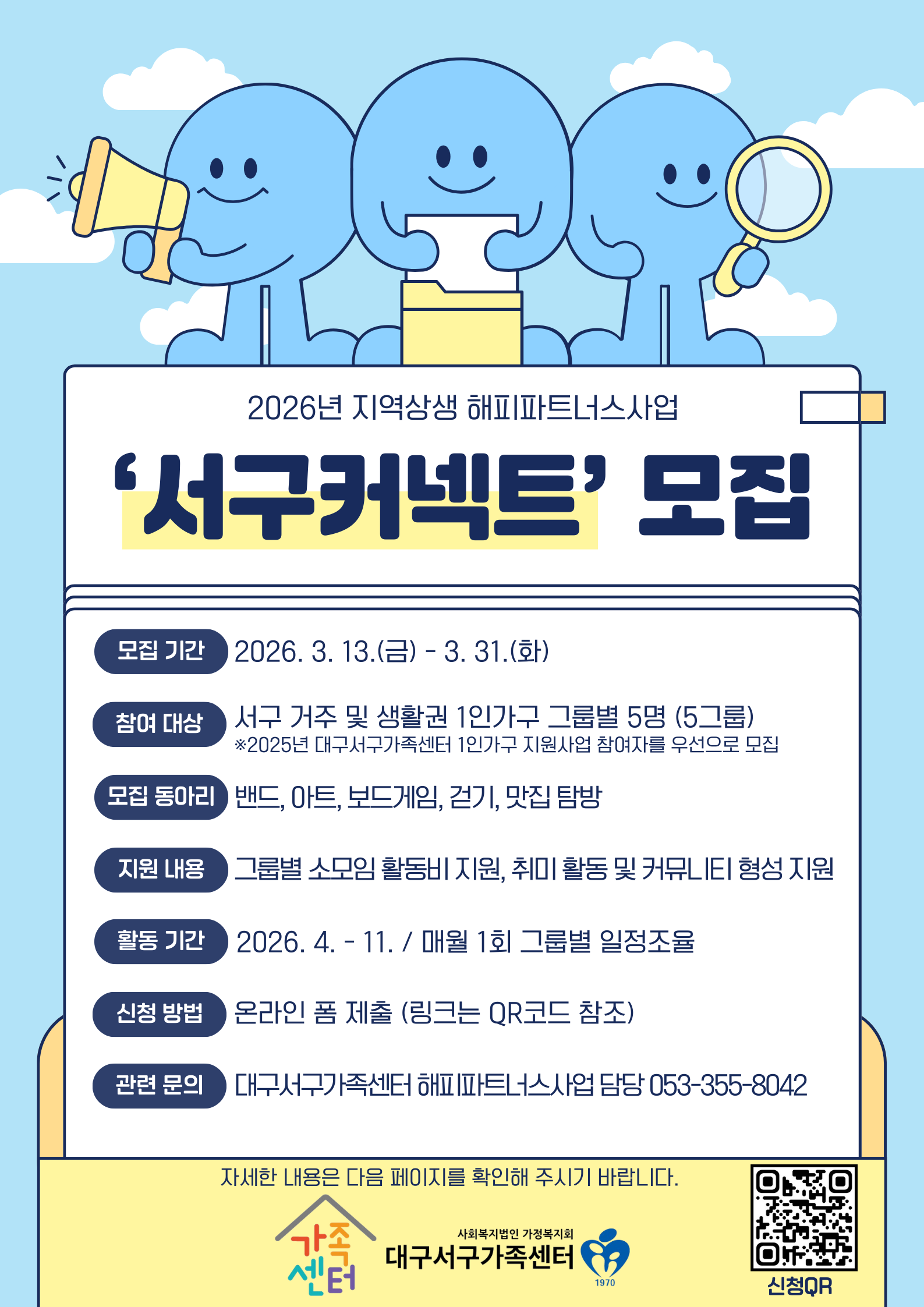[대구서구가족센터]2026년 지역상생 해피파트너스사업 '서구커넥트' 모집작성자 : 장준익 작성일 : 26-03-14