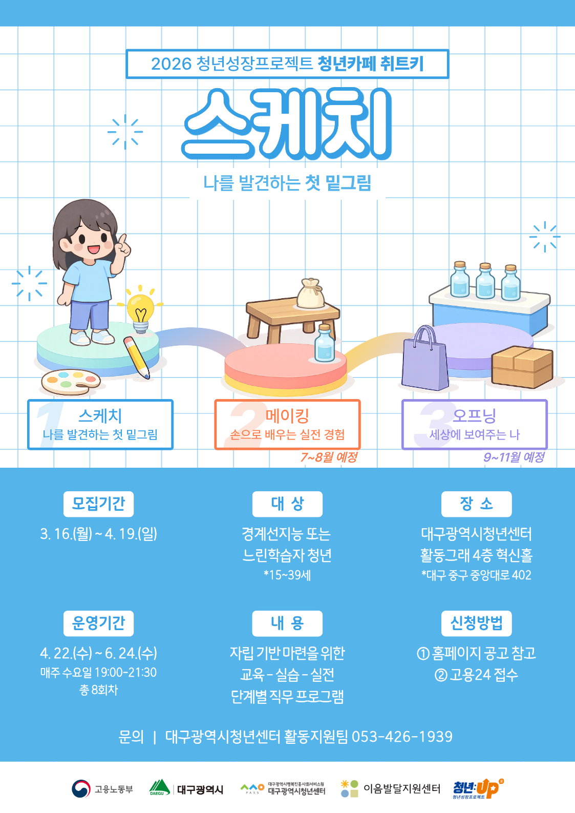 2026 청년성장프로젝트 청년카페 취트키 사회역량강화(스케치) 참여자 모집작성자 : 대구청년센터 작성일 : 26-03-16 대구광역시청년센터
