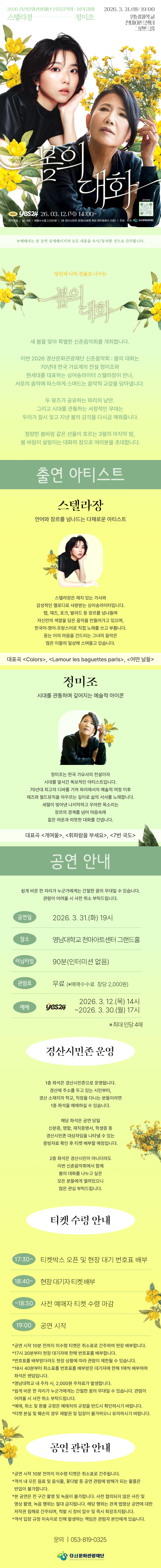 스텔라장 X 정미조, 신춘음악회 <봄의 대화>작성자 : 박선희 작성일 : 26-03-17