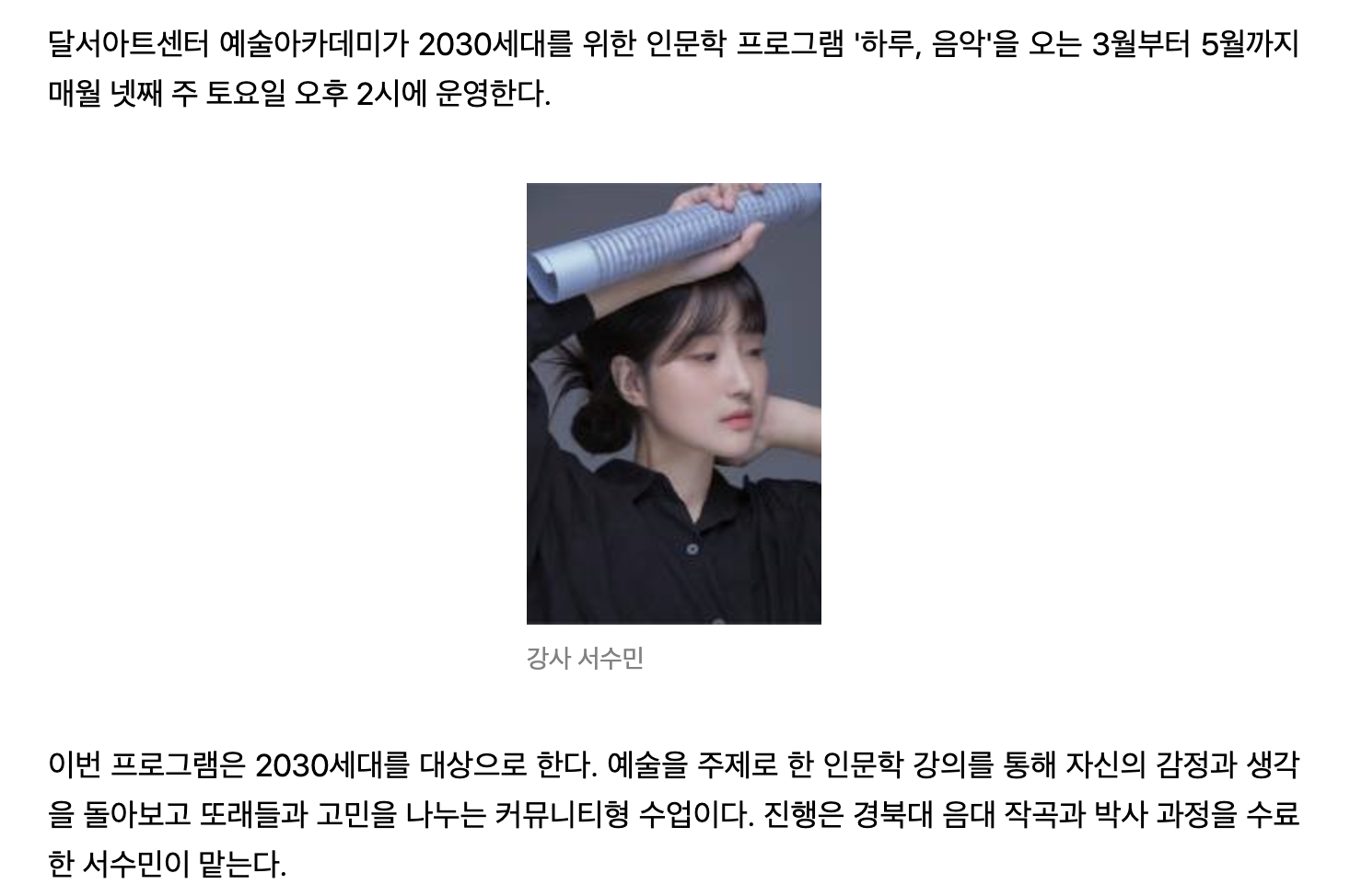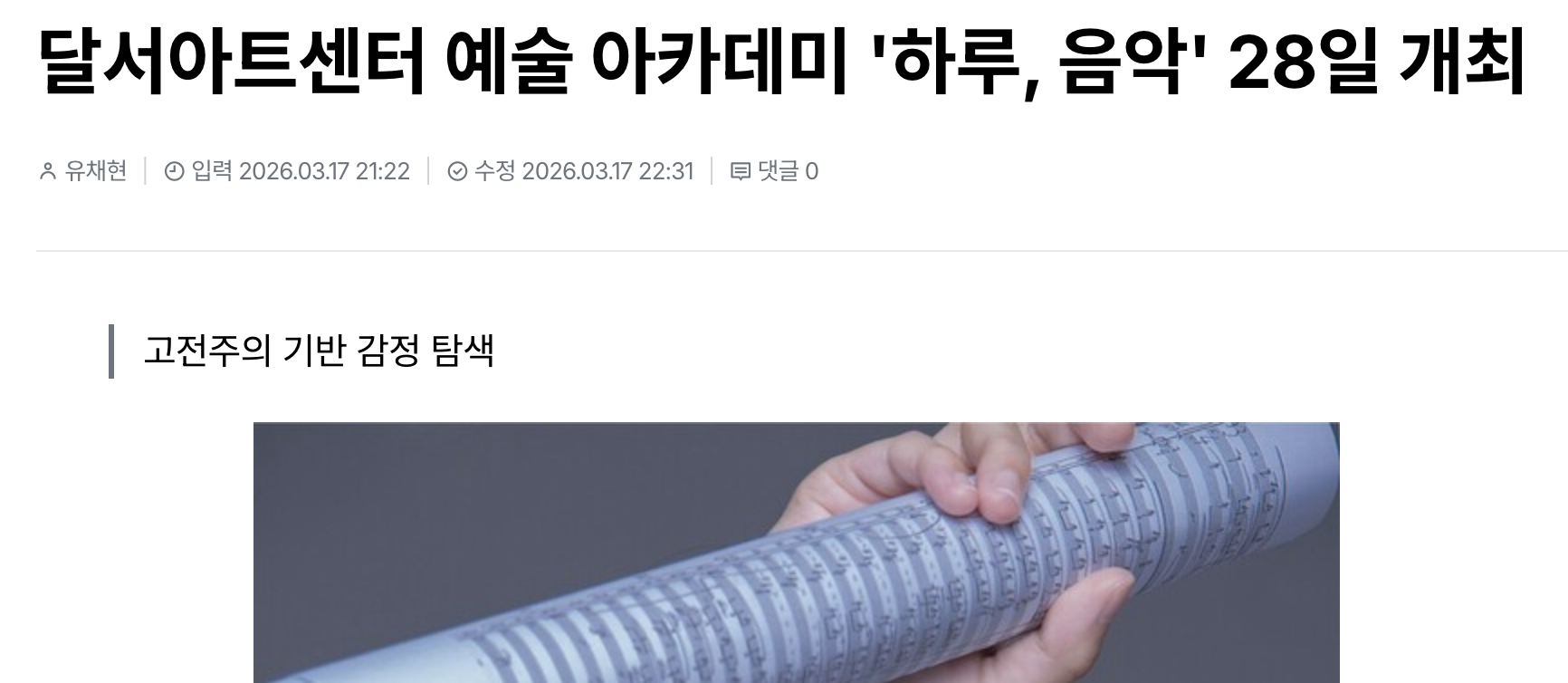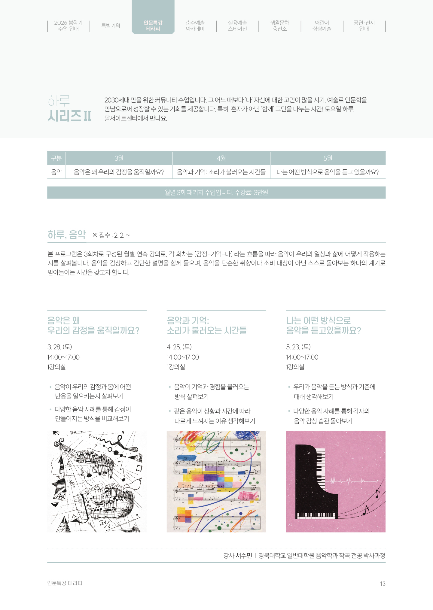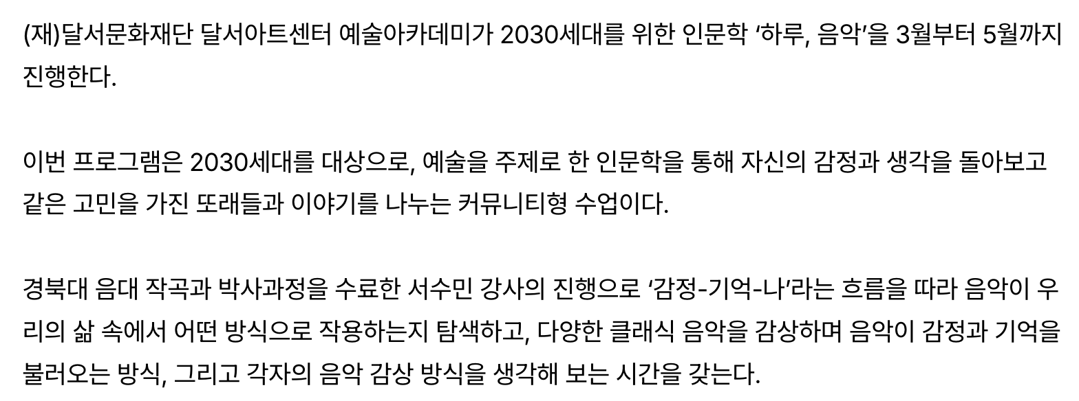 🎵 [하루, 음악] 2030 클래식 인문학 강의 — 달서아트센터작성자 : 서수민 작성일 : 26-03-18